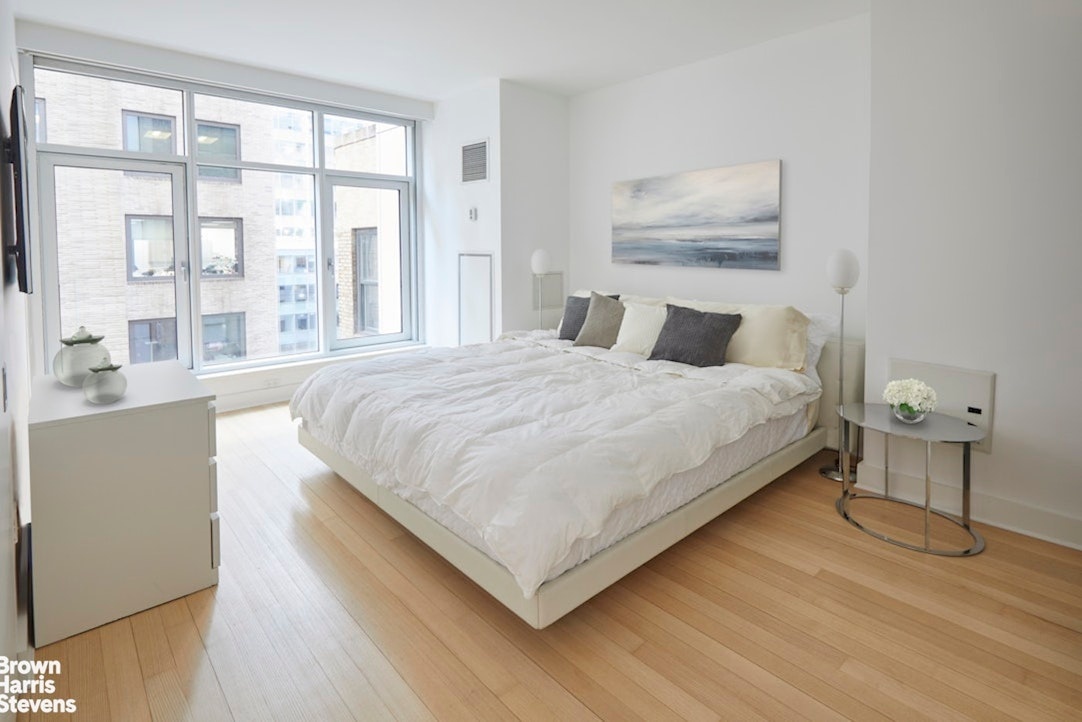 A newly installed Lutron lighting system provides state of the art ambience management with electronic shades throughout, including blackout shades in the bedrooms. For added comfort and convenience this home boasts 4-zone heating and air conditioning. There are new white oak floors, and the apartment's floor-to-ceiling windows compliment its nearly 10-foot ceilings - all adding to the overall loft-like feeling of openness. The spacious living room adjoins an inviting, comfortable dining room. This large 1,416 square foot home would be perfect as a primary residence, pied-a-terre or investment property.