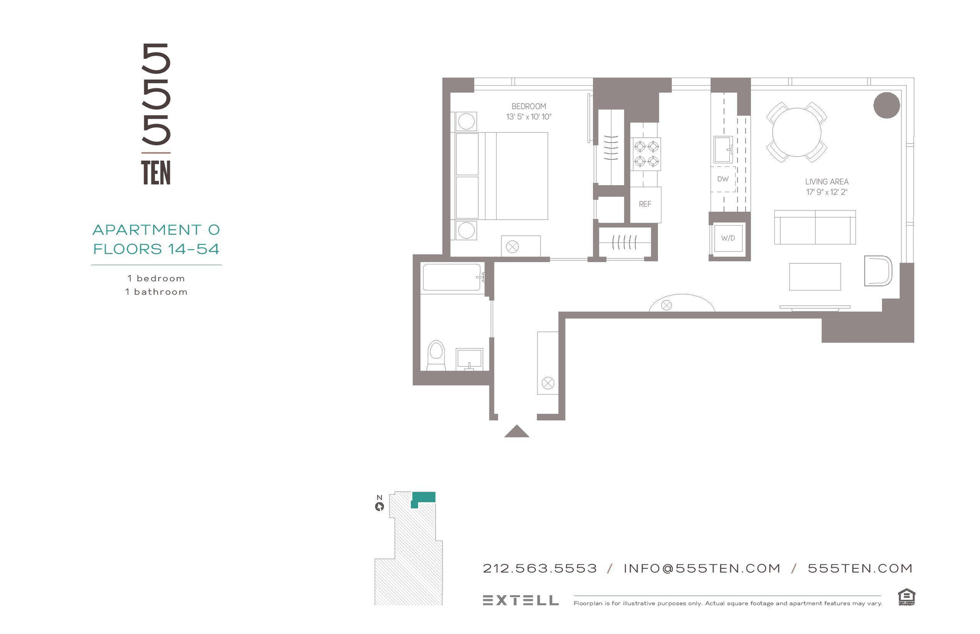 With sweeping views of the city from sunrise to sunset 555TEN towers over the new West Side. 56 floors of loft, 1, 2, and 3 bedroom luxury midtown rentals raise New York living to a new level.