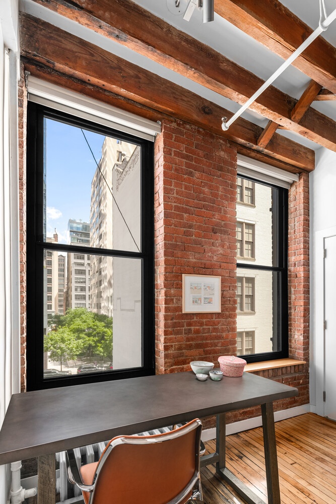 This pristine two bedroom, two bathroom loft has undergone meticulous renovation while keeping much of the original pre-war character intact. Original chestnut floors, renovated kitchen, brick walls and beautiful arched front windows with Southern exposure highlight the rare charm of this Soho loft.