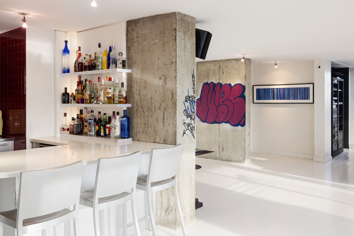 Chefs will appreciate the Open Kitchen featuring a Sub-Zero Refrigerator, Miele Gas Stove, Miele Dishwasher, Poggenpohl Cabinetry, Lots of Counter Space, a Breakfast Bar and a Wine Fridge.