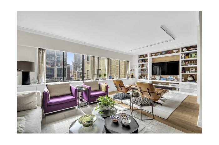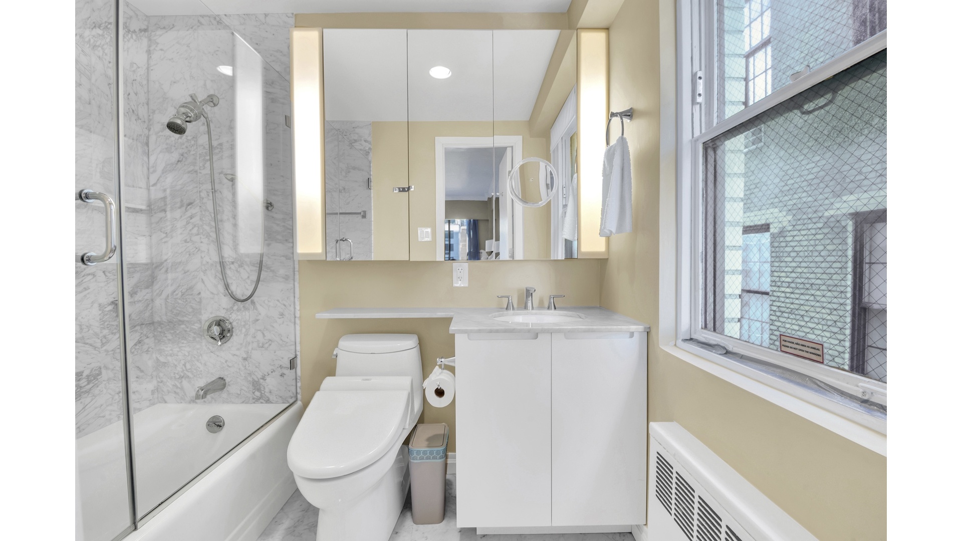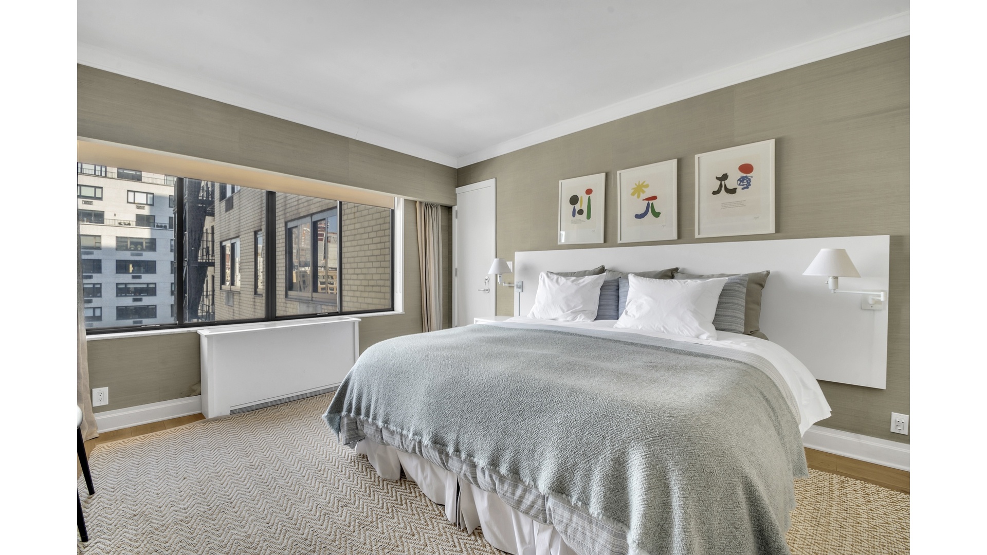 Both bedrooms are generously scaled and feature en-suite windowed marble baths. The primary suite is a serene retreat with four north-facing windows, expansive Upper East Side views, and a massive custom walk-in closet plus an additional closet. The second bedroom-ideal as a guest room or home office-also enjoys four north-facing windows, custom built-ins, and its own en-suite bath. Additional highlights include eight closets in total, Miele washer/dryer, beautiful hardwood floors and refined lighting throughout.