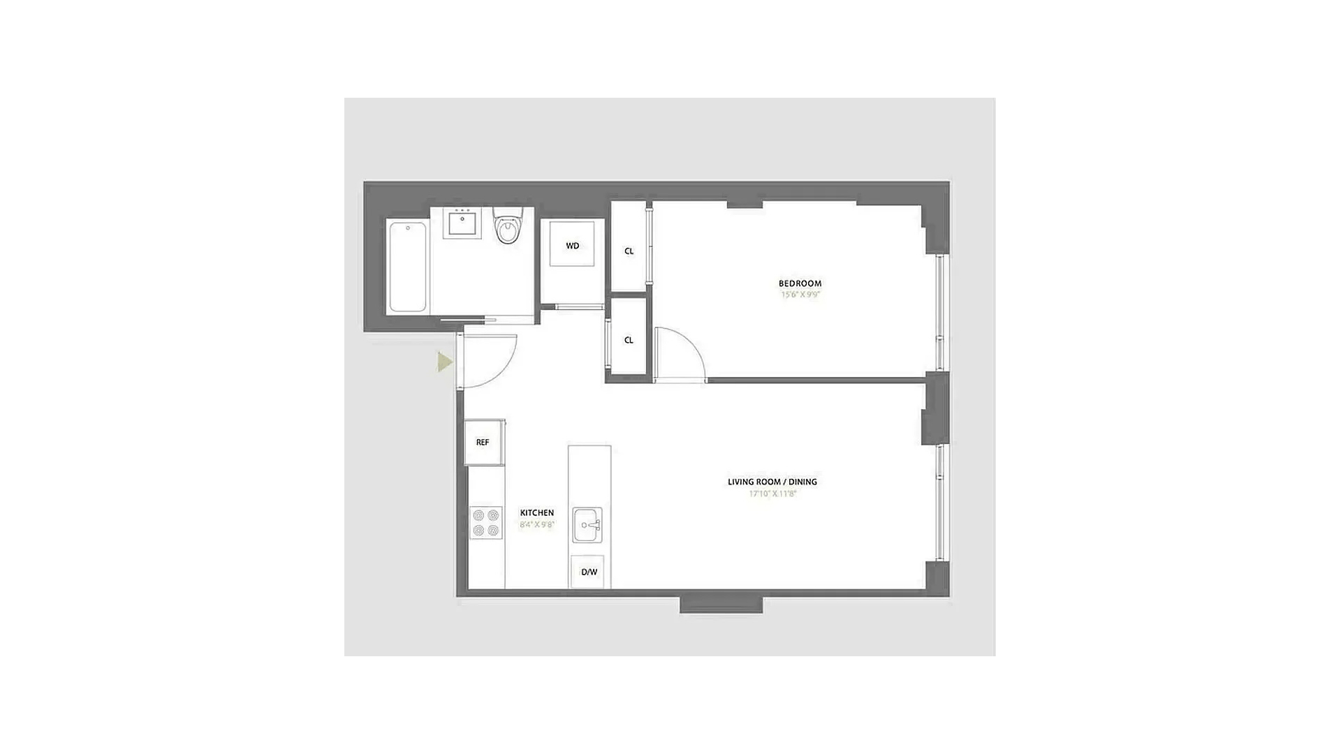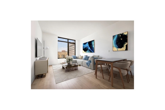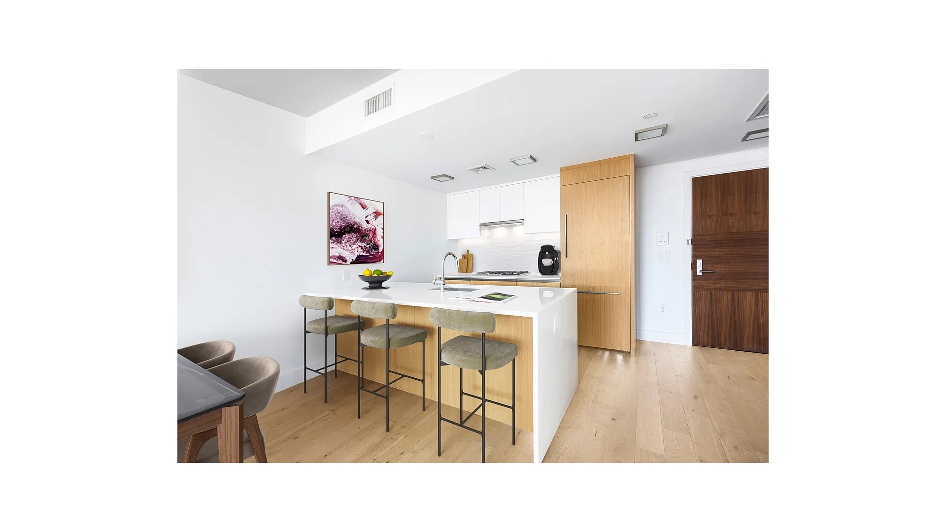 Residence 4A is flawlessly designed, one-bedroom, one-bathroom corner apartment. This well-proportioned layout leaves no detail spared with oversized windows, 6 wide plank oak floors, Bosch washer/dryer, and an efficient central A/C and heating system.The kitchen features top-of-the-line appliances including Canadian white oak veneer lower cabinets, white lacquered upper cabinets, Caeserstone frosty carrina quartz countertops, stainless steel undermount sink by Signature, Grohe faucet, and Bosch appliances. In addition, the bedroom suite is incredibly spacious with ample closet space. The bathroom features a walnut veneer vanity with pure white caesarstone quartz countertops, Signature plumbing fixtures, and an undermount Signature bathtub.
