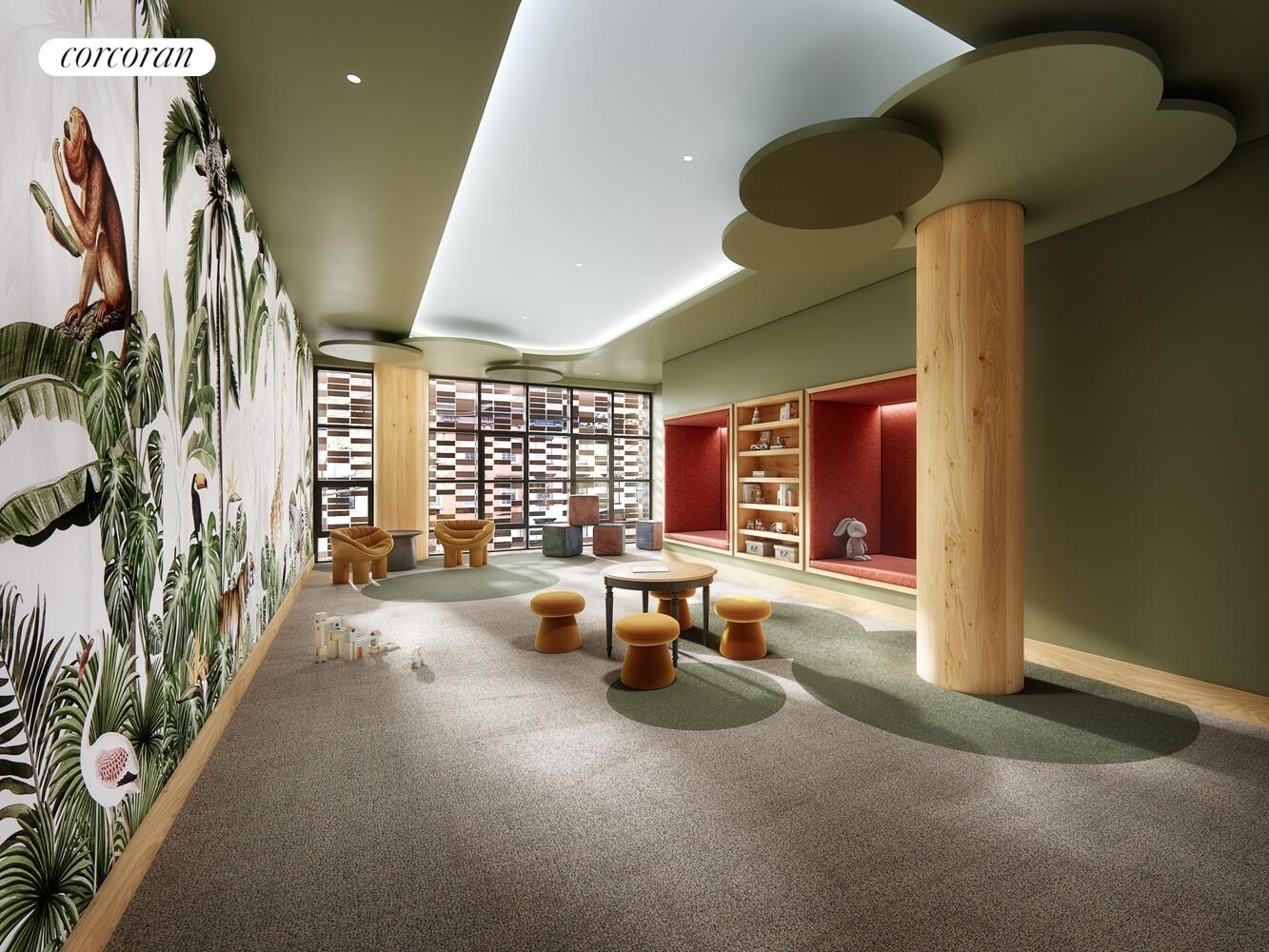 The unique corner location of the building ensures a variety of viewpoints ranging from south-facing units, to water views, to birds-eye views of the Williamsburg Bridge and Manhattan skyline, or pastoral views over the building's landscaped native gardens. Enter the building into a magnificent lobby that introduces you to the Parisian-inspired design seen throughout every home. An ageless palette includes woodwork juxtaposed with rich metals, natural stones, curated artwork, and ambient lighting; the perfect embodiment of European craftsmanship living in harmony with Brooklyn's creative heritage. Building features include a part-time attended lobby plus a virtual doorman, package room, two elevators, storage closets for every home, and a bike room. A magnificent second floor amenity space flooded with natural light has been thoughtfully envisioned to meet your every need and includes a spacious co-working space and lounge with an adjacent terrace, an oversized and elegant fitness center, and a whimsical children's playroom. Work from home with ease ensconced in a luxurious and peaceful environment.