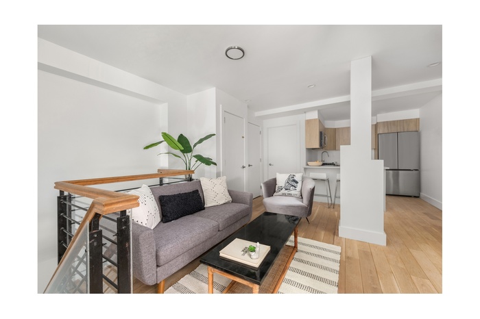 Freshly renovated garden duplex, at the Lofts at Waverly. Spacious apartment with two private outdoor spaces. Laundry in unit, dishwasher, and central heating & air conditioning round out some of the amenities. The building has a common roofdeck and free bike storage in the basement.