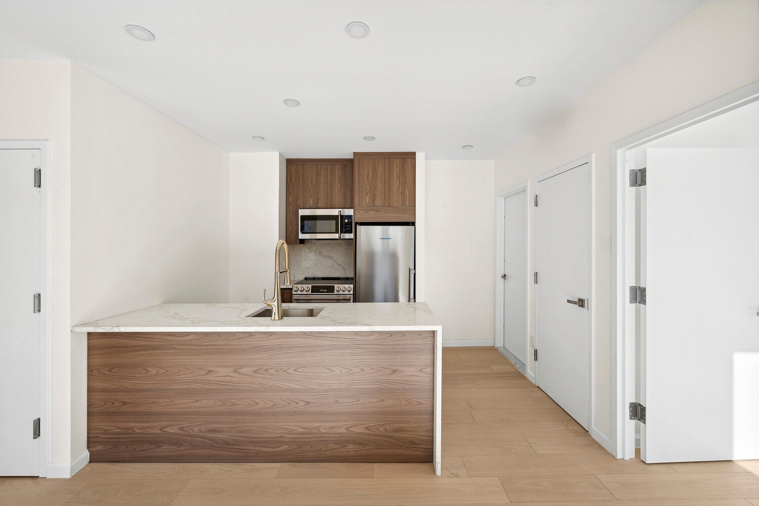 The building is seconds from an endless choice of trendy restaurants, cafes, bars, and shops. Nearby greenspaces and live music venues include McCarren Park, Msgr. McGolrick Park, Cooper Park, Brooklyn Steel, Our Wicked Lady, and the Williamsburg Waterfront.