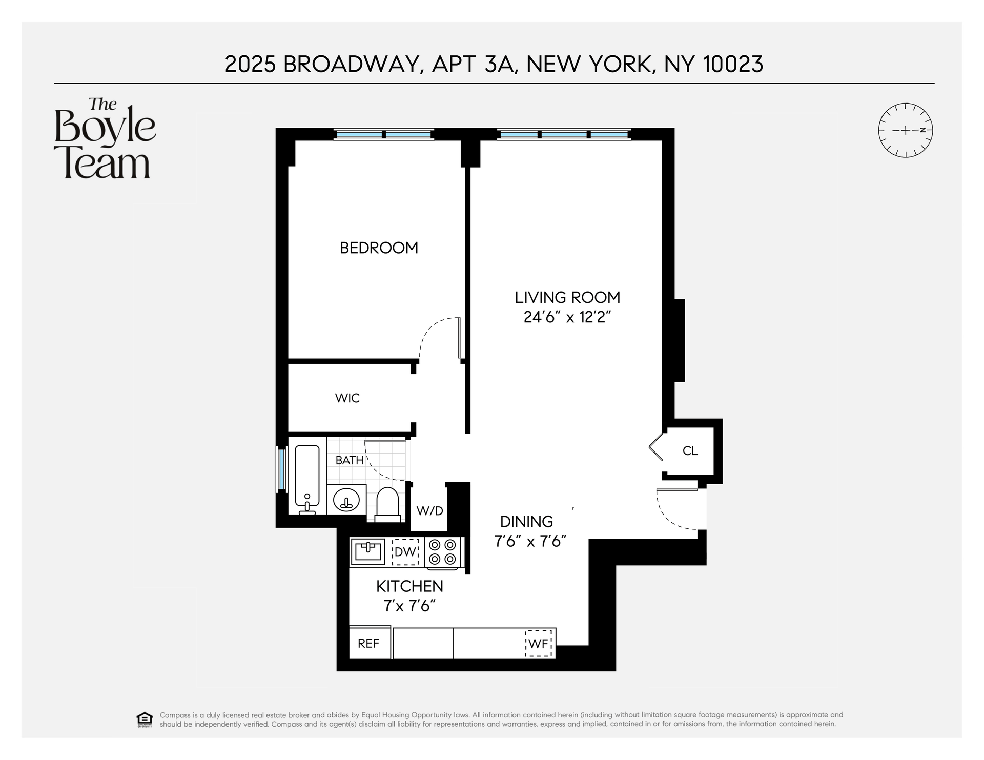 The renovated, windowed bathroom includes marble-style ceramic tile, a tub/shower with a custom glass door. The west-facing bedroom comfortably fits a queen-size bed and offers a large customized double closet.
