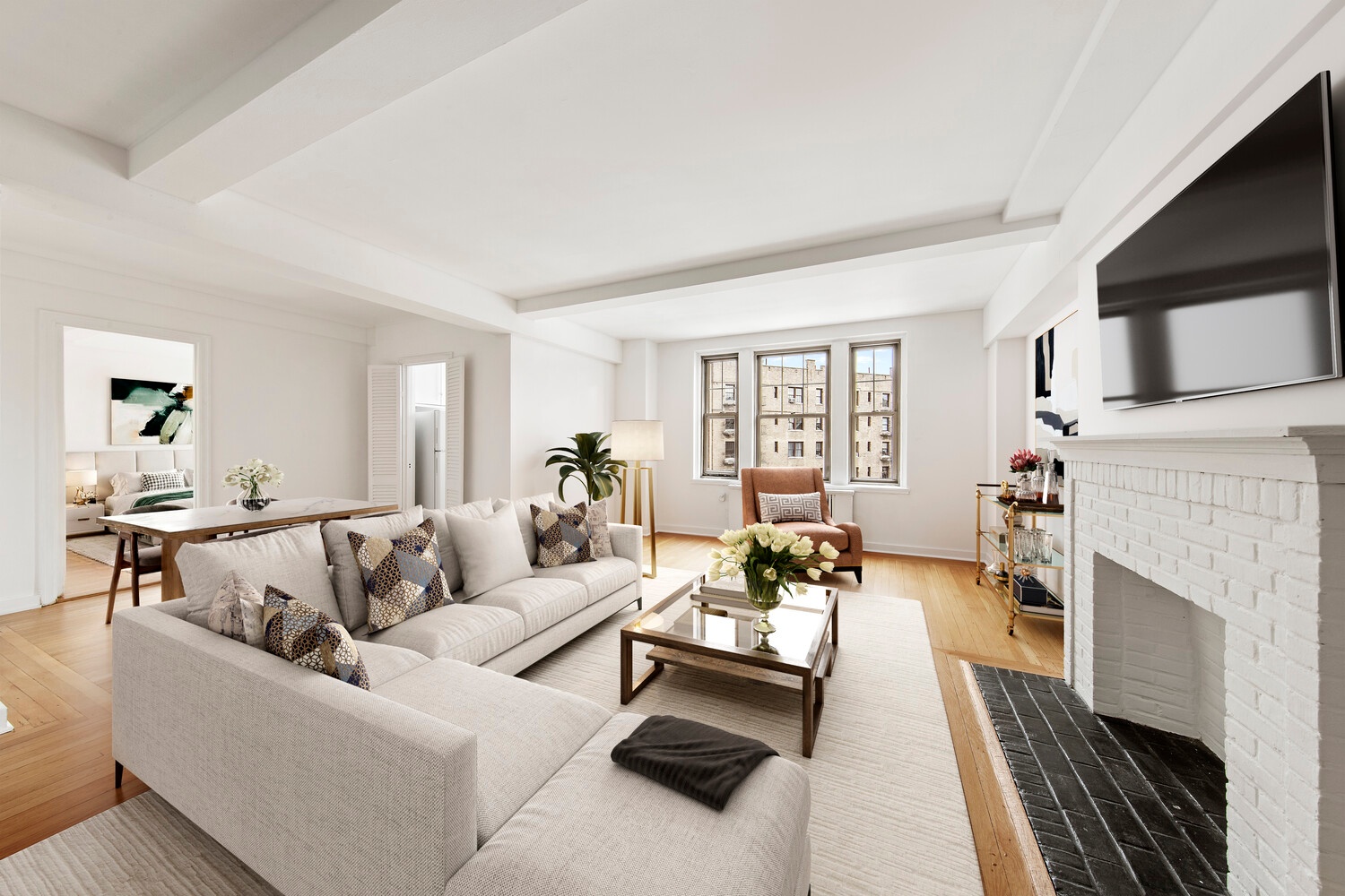 One of the most desired layouts in the building, the G-line residence offers generous proportions, abundant natural light, and timeless prewar charm throughout. Upon entry, you are greeted by an inviting and open layout with a spacious foyer featuring a large closet with ample storage.