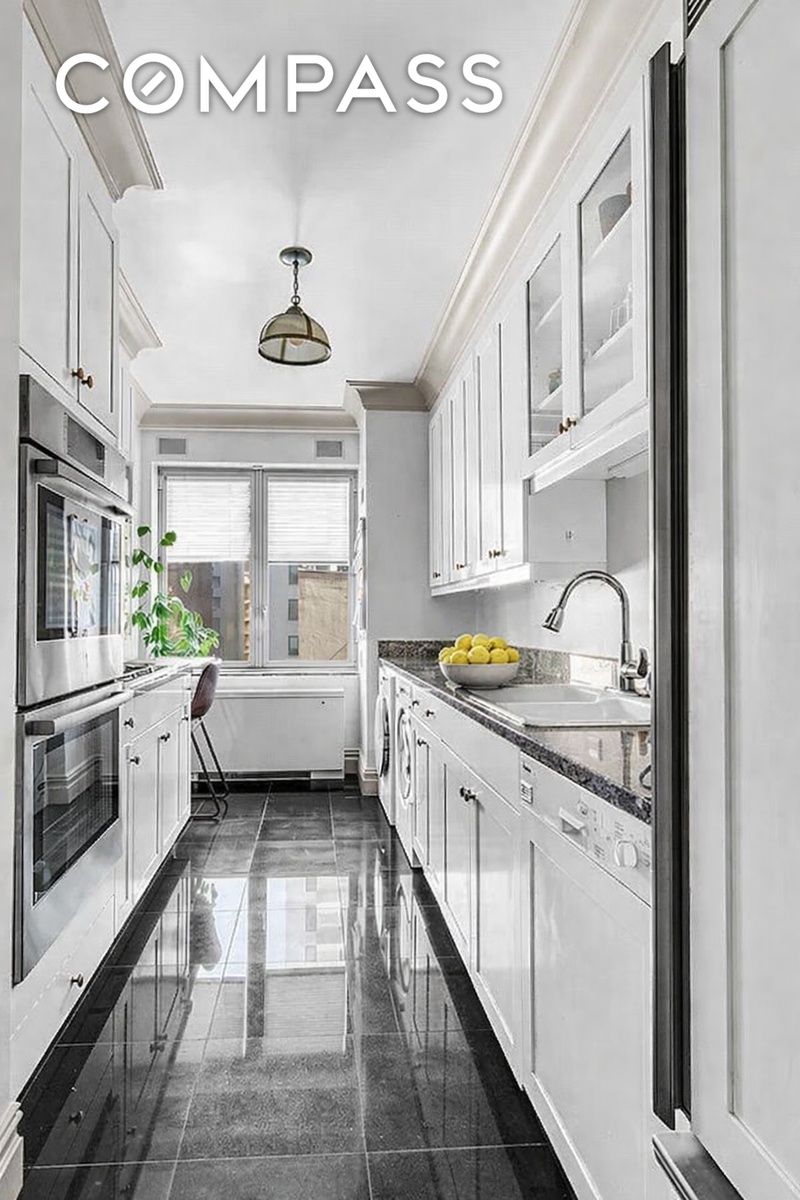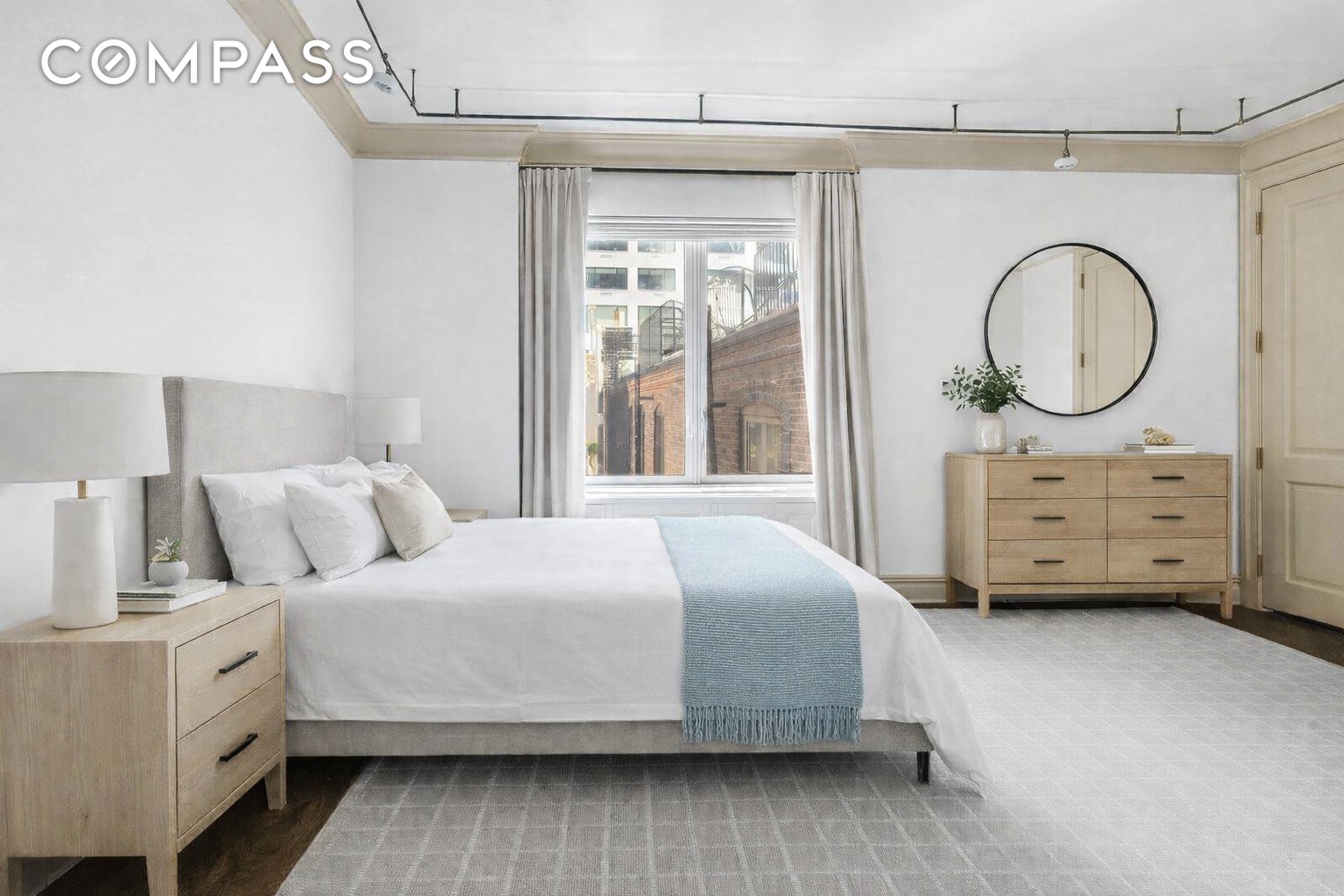 This pin-drop quiet residence is further enhanced by herringbone wood floors, multi-zoned heating and air conditioning, an in-unit washer and dryer, and abundant sunshine throughout the day.