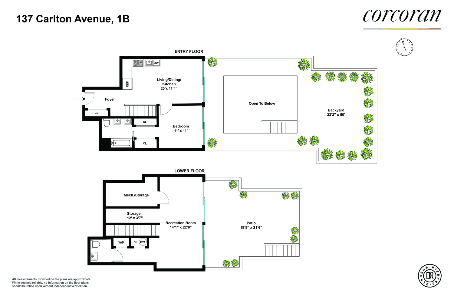This super sunny 1301 SF garden duplex lives like a mini townhouse and sits just a half a block from Fort Greene Park and is a rarely available gem offering loads of interior space and a massive 1318 SF two-tiered private garden available from both levels. Surrounded by leafy green trees, a magnificent Olmstead designed park with off-leash dog hours from 9pm until 9am, and an abundance of award-winning restaurants, cafes and bars in literally every direction. You will not be disappointed with the abundance of light, the volume of indoor and outdoor space, and the rare opportunity to live in a boutique 6-unit building with all the luxuries of a high-rise but the intimacy of the neighboring brownstones. This like-new condominium offers two spacious floors in a uniquely designed modern building with a warm and minimalist aesthetic that makes the perfect backdrop for whatever your style. Offering high ceilings and oversized windows all facing South, you can be assured of incredible sunlight all day long, no matter the season, AND a south facing garden.