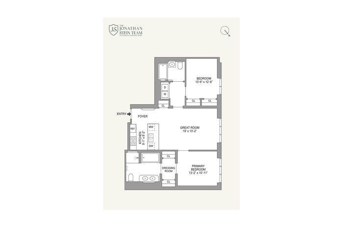 The primary suite is complete with generous closet space and a beautifully appointed en-suite bathroom. Radiant heated floors, Namibia honed white marble surfaces, and a sculptural Crema Delicato marble vanity create a serene, spa-like environment.