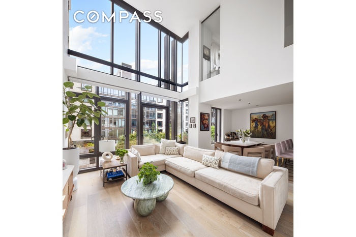 Presenting a stunning 3-bedroom, 3.5-bathroom duplex residence with a bonus loft area, offering 2,149 square feet of sophisticated living space in the heart of South Williamsburg’s vibrant waterfront community. This expansive home is defined by soaring double-height ceilings, oversized rooms, and sun-filled interiors. The open main level seamlessly connects the living, dining, and kitchen areas. The fully updated kitchen features sleek white cabinetry, an eat-in counter, Smeg appliances, two refrigerators, and a double oven. Additional in-unit highlights include well-appointed bedrooms, luxurious bathrooms with travertine stone finishes, central air, hardwood floors, and an in-unit washer/dryer and dishwasher for ultimate comfort and convenience.