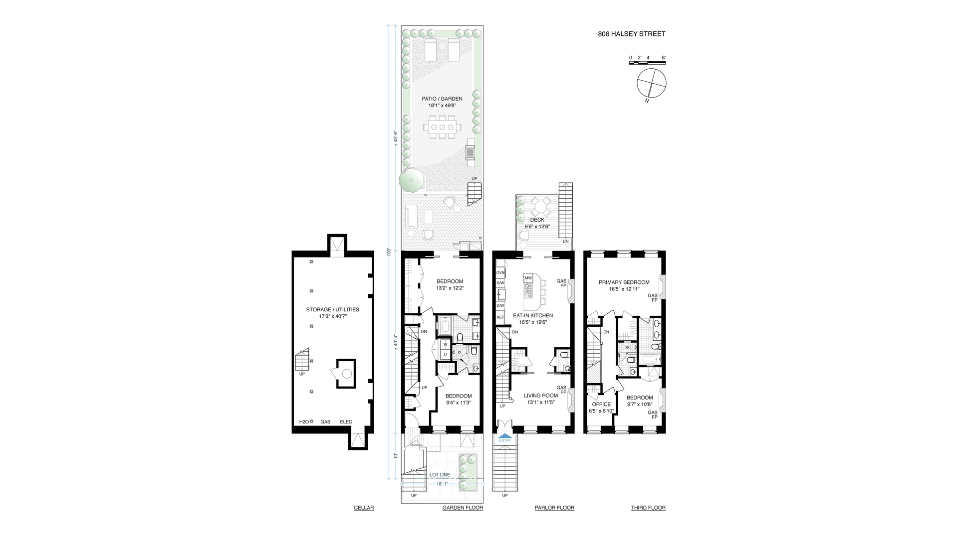 806 Halsey Street offers 4 Bedrooms plus a home-office/nursery, 4.5 bathrooms, a Chef's Kitchen, 3 fireplaces and a Parlor-Deck with access to a South-facing Garden.