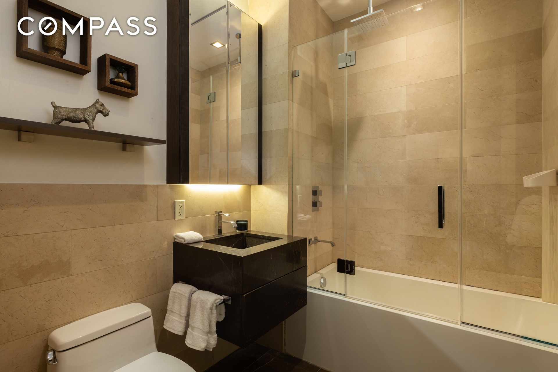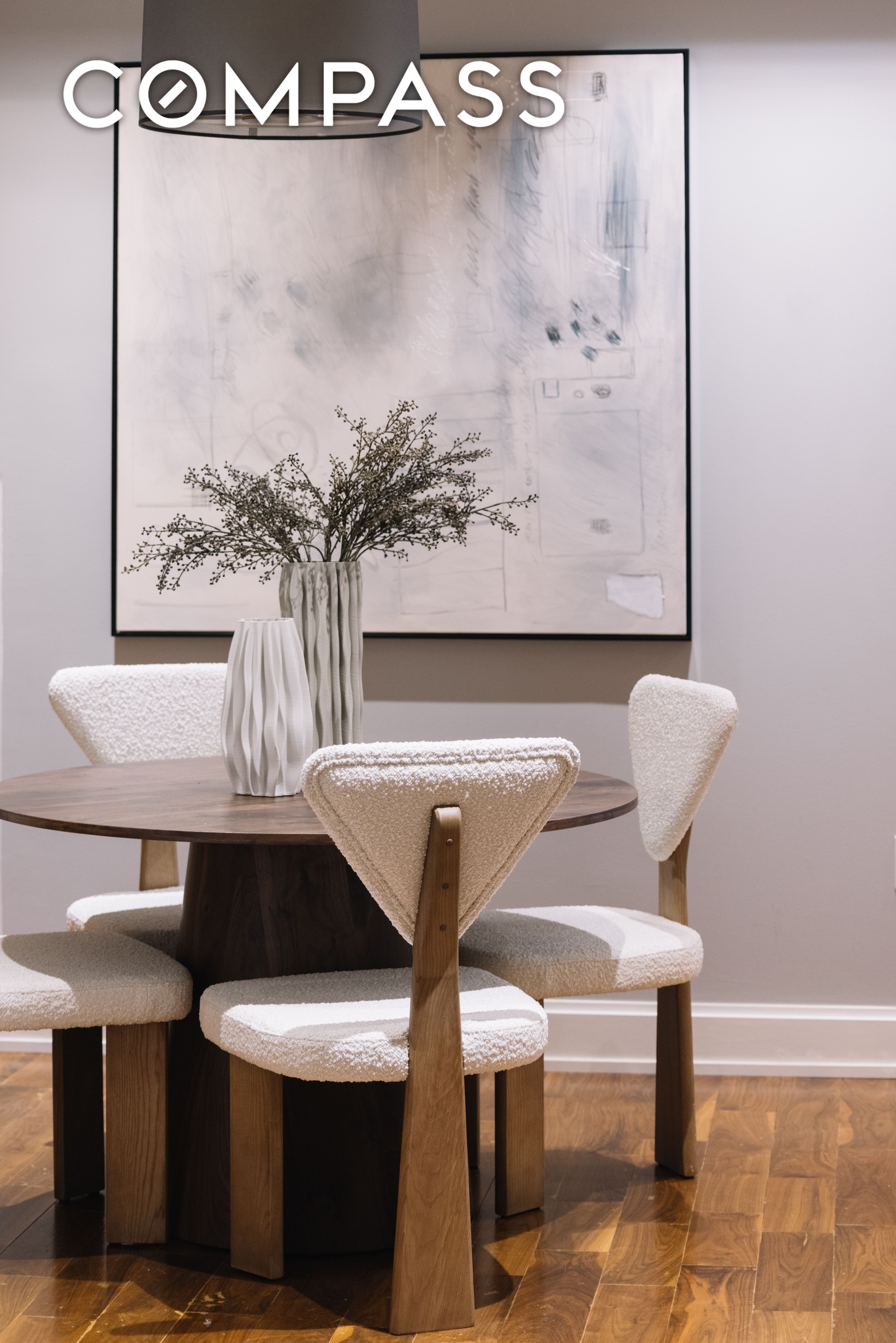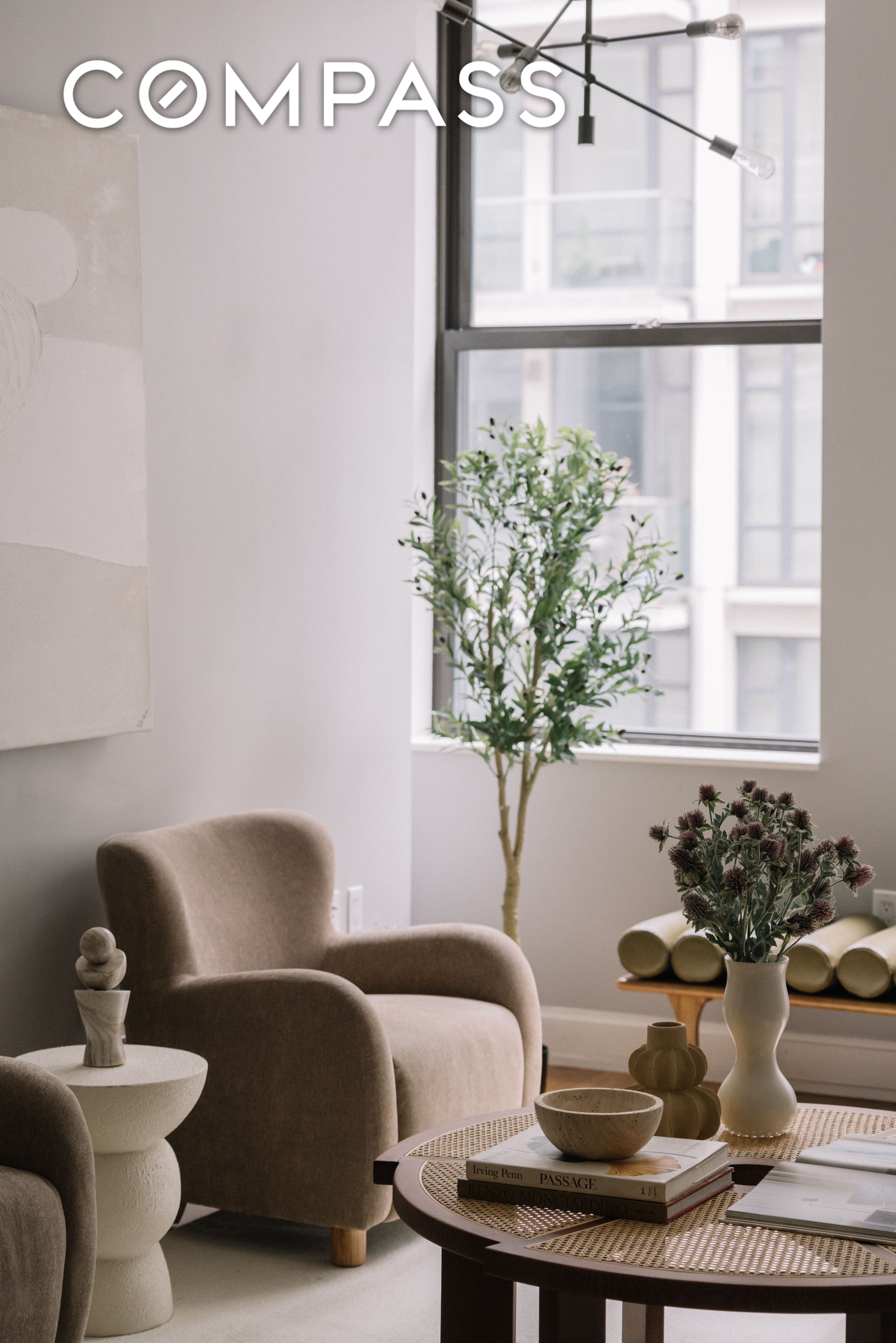 Welcome to this beautifully crafted one bedroom residence, thoughtfully designed with both style and versatility in mind. As you enter the apartment, you’re greeted by a grand gallery-style foyer—with soaring ceilings nearly 11 feet high and oversized windows in both the living room and bedroom, natural light floods the entire home, highlighting the luxurious walnut hardwood floors that run throughout. To the left of the foyer, an oversized coat closet offers exceptional storage and the gallery-style hallway provides the perfect setting to showcase your art collection. At the gallery’s end, a spacious, flex room awaits—ideal as a dining area, home office, lounge, or extra sleeping space. Currently outfitted with a (queen-size) Murphy bed, this bonus area effortlessly accommodates guests. At the heart of the home is the open-concept kitchen, seamlessly integrated into the living space—a true gathering hub. It features premium appliances: a Miele cooktop, built-in convection oven, dishwasher, and Sub-Zero refrigerator. Crystal-white stone countertops and backsplash lend a sleek, modern touch, while custom Alta Cucina rosewood cabinetry adds warmth and refinement. The kitchen also features large breakfast bar that offers additional seating and contemporary flair. The generous living area is bright and airy, perfectly sized for entertaining. Its soaring ceilings and expansive windows create an inviting space for both intimate gatherings and larger get-togethers. Just off the living space is a spacious bedroom that comfortably accommodates a king-size bed, nightstands, a cozy sitting area, and a dresser—all complemented by a large closet. The elegant bathroom, conveniently located off the gallery hall, features refined tilework, a full-size soaking tub with shower, and plenty of built-in storage. A stacked washer/dryer discretely integrated in the kitchen adds further convenience to city living. Located in a boutique condominium at 140 W 22nd Street in the heart of Chelsea, this home offers a beautifully landscaped roof deck with skyline views, a full-time doorman, live-in resident manager, bike storage, and large basement storage units. There is a 1% flip tax paid by the seller. Just a short distance from the Flatiron District, Greenwich Village, world renowned art galleries, museums, cafés, and boutiques, plus multiple subway lines, buses, and other transit options—you’re immersed in the vibrant energy of the neighborhood and minutes from some of the city's finest dining. Experience urban elegance in a home that blends refined design, flexible living, and a prime Chelsea address. Not to be missed, please contact us for an appointment.