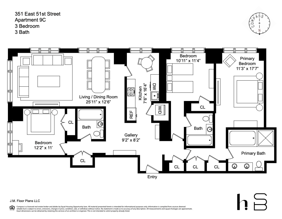 Rediscover a Classic.. Residence 9C is a 1, 750 square foot corner three bedroom, three bathroom home with gracious proportions and expansive south and east facing city views.