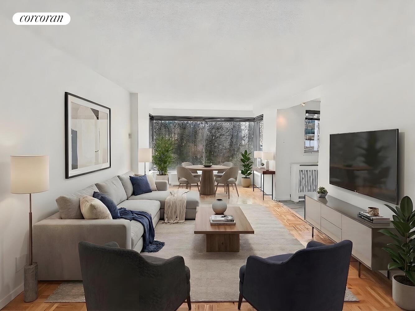 The expansive layout is bright and inviting, featuring a rare windowed kitchen, multi-zone HVAC, and space to comfortably accommodate full-size furnishings, including a king-size bed. A newly renovated kitchen and two oversized closets with dressing-area potential provide both style and exceptional storage.