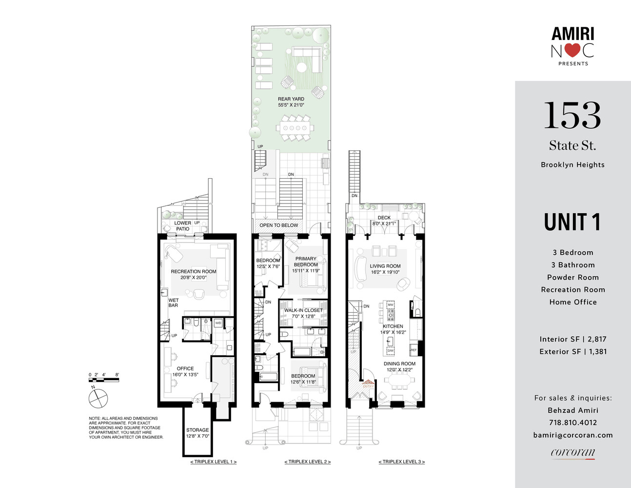 On a storybook, tree-lined stretch of State Street - where the quiet rhythm of Brooklyn Heights unfolds through historic facades and dappled afternoon light - a classic townhouse has been meticulously transformed into an intimate two-residence condominium. Set on an extra-deep 21' x 108' lot, this garden triplex delivers the proportions and privacy of true townhouse living, seamlessly paired with contemporary systems and craftsmanship - including central climate control and a fully integrated suite of Miele appliances throughout.