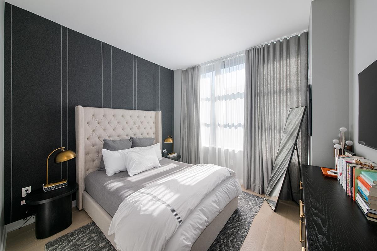 Residence 5-K @ 180 Front St is a meticulously designed 1-bedroom, 1-bath condominium in the full-service Front & York complex, located at the heart of DUMBO. Enter through a gracious foyer that houses a full-size washer/dryer and a large coat closet and adjoin is a custom entrainment area providing a smart and efficient flow. The chef’s kitchen is equipped with top-tier Gaggenau appliances, custom cabinetry, Waterworks fixtures, Caldia marble countertops and abundant storage—ideal for everyday cooking and entertaining. The airy living area is defined by oversized windows that flood the space with natural light and frame views of the city and the building’s serene community courtyard. The bedroom provides a peaceful retreat with expansive windows and a generous closet. A second hallway closet offers additional storage before the spa-like 5- fixture bathroom, which features Bianco Bello marble tile walls and tub surrounds, double sinks, a deep soaking tub, a separate glass-enclosed shower and radiant-heated Grey River stone floors for everyday luxury and comfort. Finishes throughout are refined and timeless, creating a sophisticated, move-in-ready home.