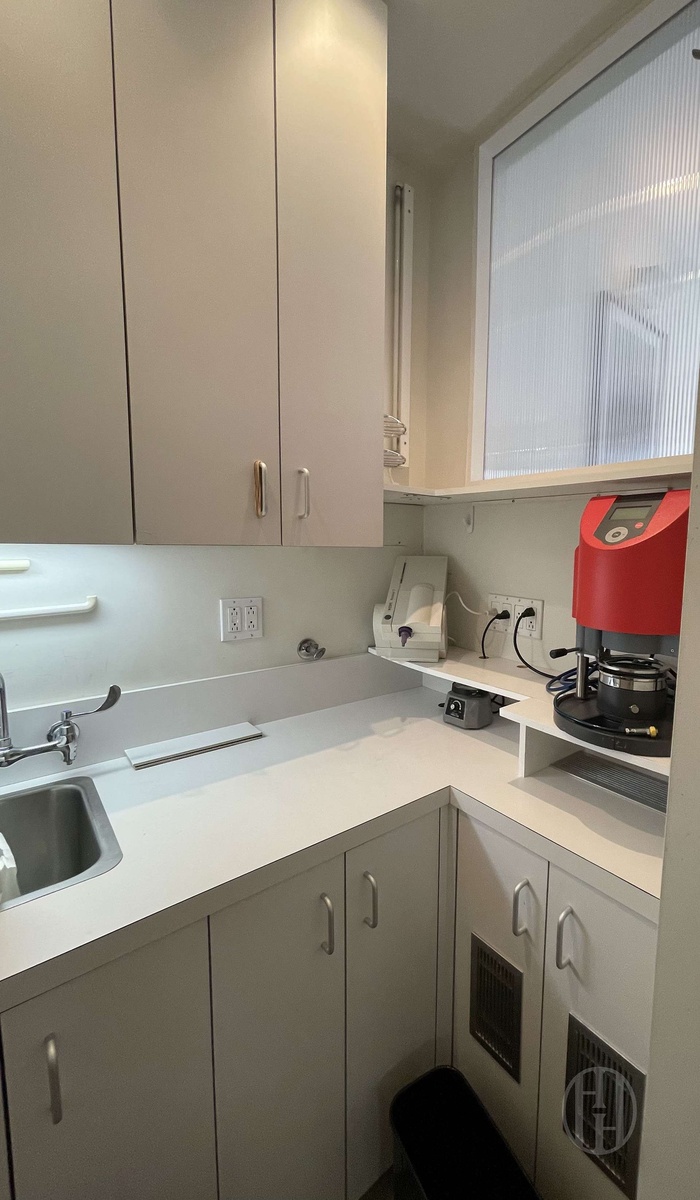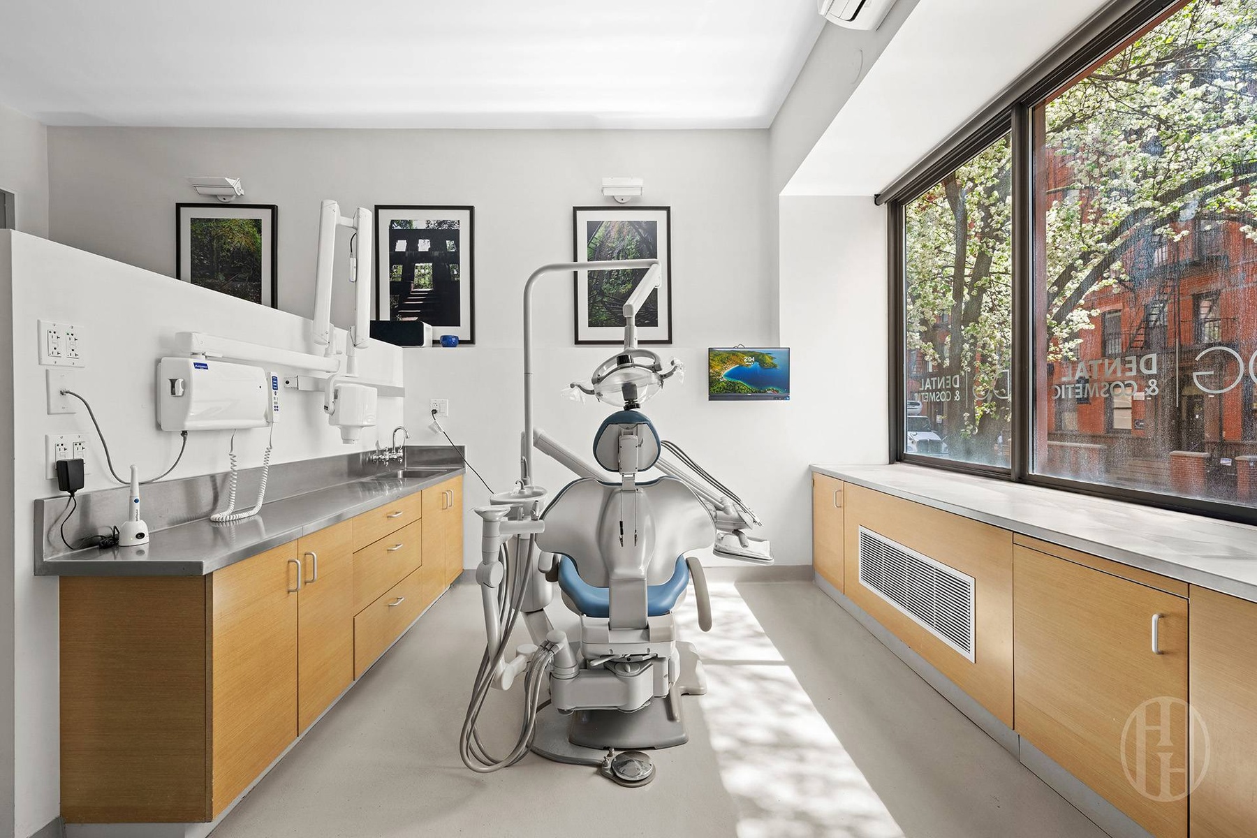 Sequestered within a collection of townhomes tucked inside the Worldwide Plaza complex, TH-1D offers the feel of a private residence with the benefits of a full-service building. Currently configured as a high-end, boutique dental office, the unit features two operatories, a reception and waiting area, one full and one half bath, and generous south-facing windows that flood the space with natural light. The office is fully plumbed, furnished, and equipped — with all contents available for purchase.
