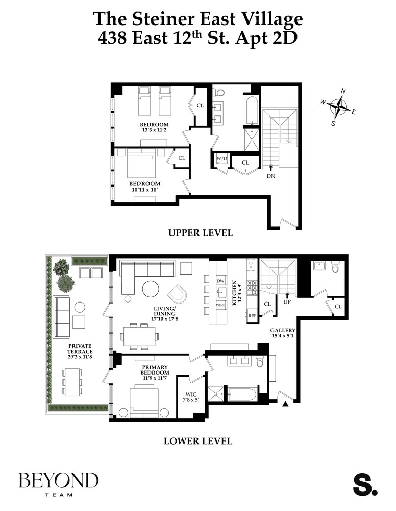 A one-of-one Garden level duplex in The Steiner, featured in Architectural Digest.