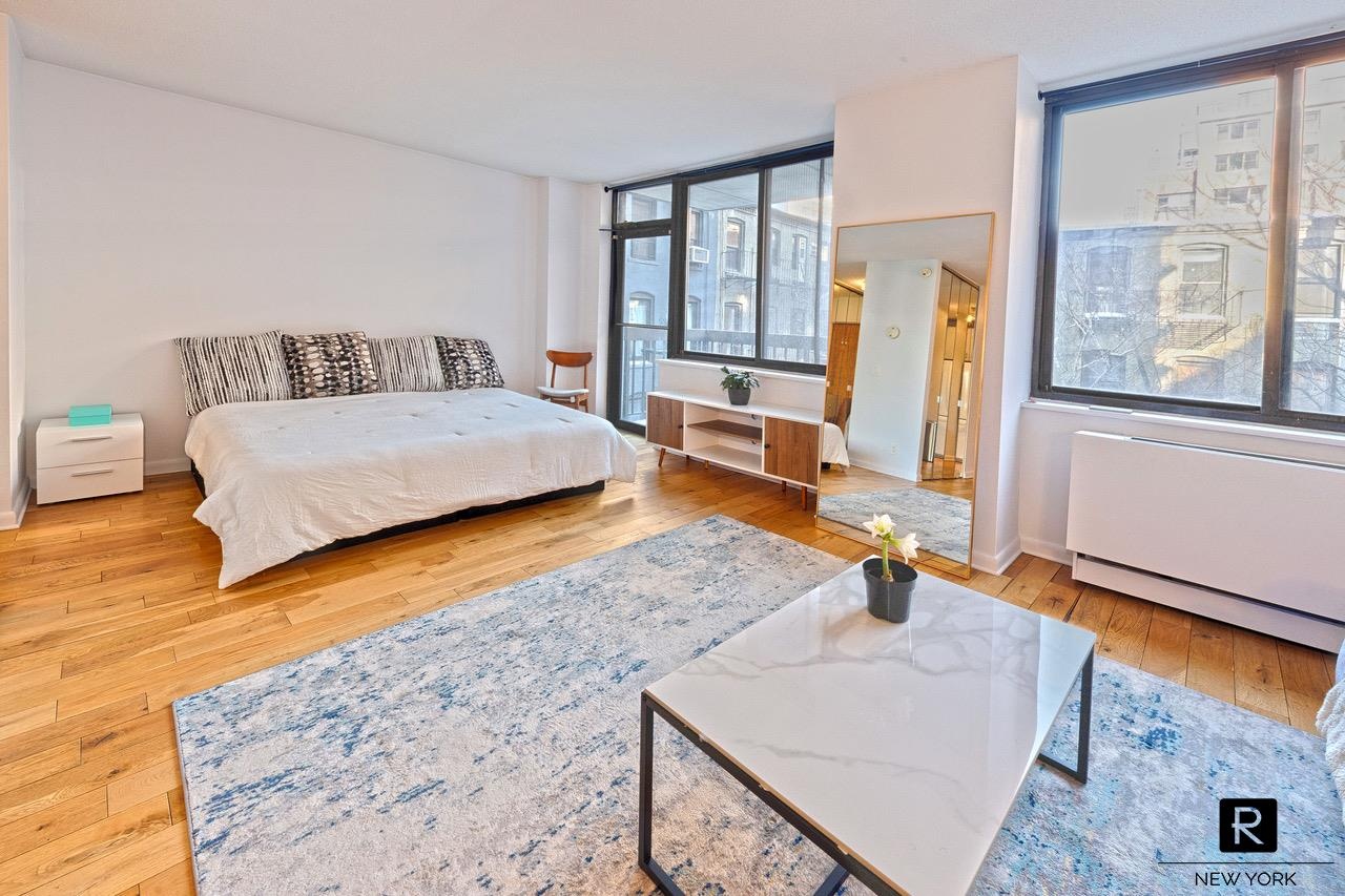 Ease your way into a new day with a morning coffee on your private balcony. This inviting alcove studio overlooking a lovely courtyard is bright and quiet. An ideal sanctuary for living, entertaining, and working from home. Oversized windows, hardwood plank flooring, marble bath, full size appliances and ample floor to ceiling closets. Le Domaine is a Boutique Full-Service pet friendly building with 4 apartments per floor in the perfect Upper East Side location near shopping (Trader Joes, Whole Foods) a variety of restaurants, crosstown bus, and all subway lines. Steps from the Q train and the East River Promenade. Resident courtyard, laundry on lobby level, roof deck. Welcome home.