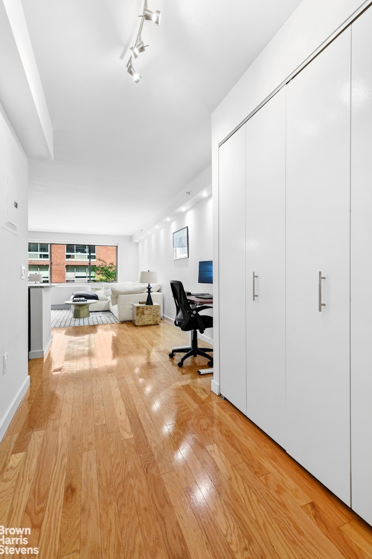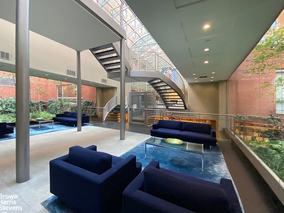 Designed for comfort and convenience, 555 West 23rd Street offers hotel-style amenities, including a 24-hour doorman and concierge, a recently renovated designer lobby, live-in superintendent, and on-site valet with dry cleaning and laundry services. Residents also enjoy access to an expansive 2,000-square-foot fitness center, a beautifully furnished lounge, bike storage, garage parking, and a stunning 9,000-square-foot landscaped courtyard with water features.