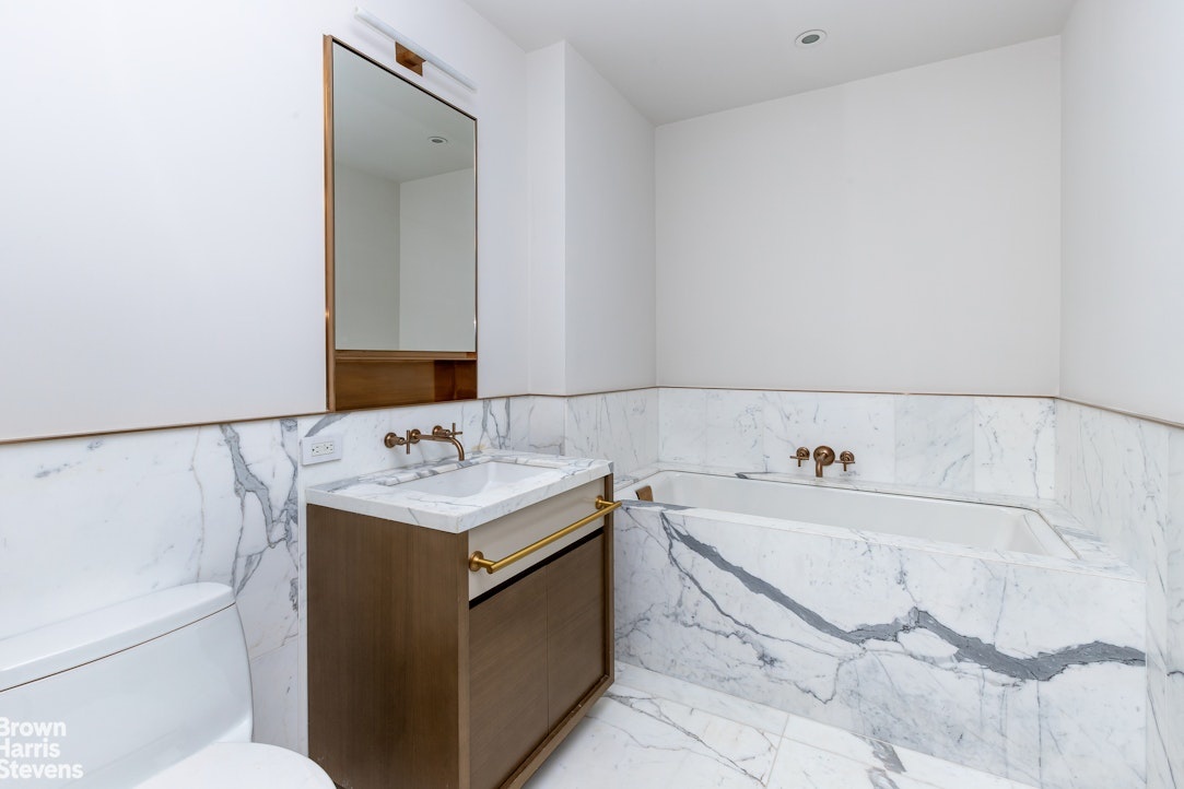 Welcome to The Halcyon, a sophisticated and modern full-service condominium offering refined living in the heart of New York City. Perfectly designed and well thought out, this oversized one-bedroom, two-bathroom home includes an additional separate home office or nursery. The loft-style living area creates a seamless setting for entertaining with 10-foot floor-to-ceiling windows. Both chic and efficient, the open kitchen has top-of-the-line Miele appliances, custom cabinetry and Calacatta marble breakfast bar and backsplash. The luxurious bedroom has an abundance of closets and a spa-like en-suite bathroom featuring white statuary marble, brushed bronze Kohler fittings, and a deep soaking bathtub with separate shower. The second full bathroom is ideally located next to the home office. There is also a washer and dryer in its own closet.