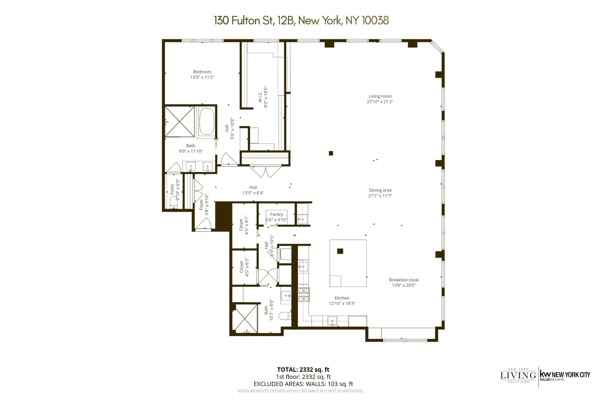 130 Fulton Street, Apartment 12B Full gut renovation Approximately 2, 280 square feet of living space, easily configured into a spacious 2 or 3 bedroom home.