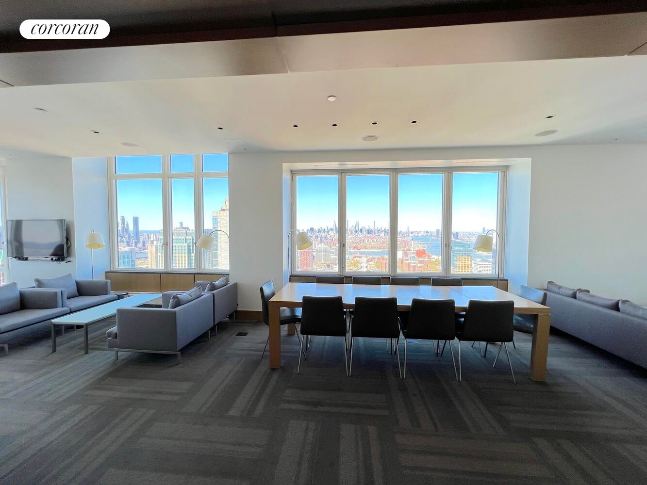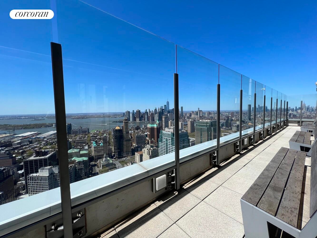 54th Floor Rooftop: A viewing terrace with BBQ grills and sweeping 360-degree views of the harbor, Manhattan skyline, and beyond.