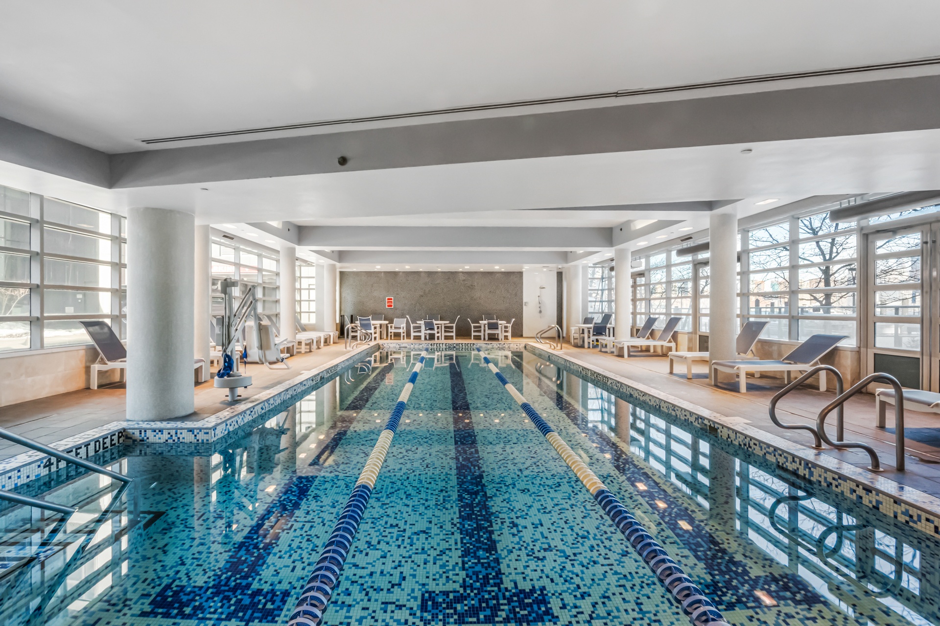 Wellness: Indoor heated pool and hot tub, sauna, and a state-of-the-art fitness center featuring Peloton bikes and a dedicated yoga room.