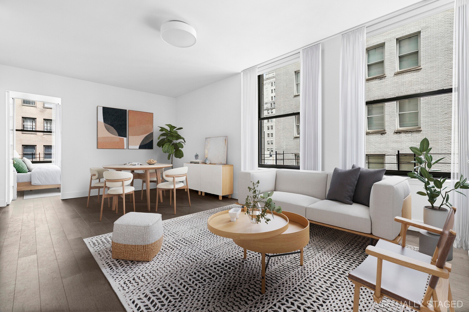 The Primary and Secondary bedrooms comfortably accommodate a king-sized bed and features en-suite bathrooms adorned with elegant glass wall tiles, full-size soaking tubs, double marble vanities and Waterworks crystal fittings, plus generous closet space for seamless organization. The alternate layout third bedroom comfortably accommodates a full-size bed with additional space for a dresser or desk ideal as a guest room, nursery, or home office. Sponsor would complete the conversion prior to closing.
