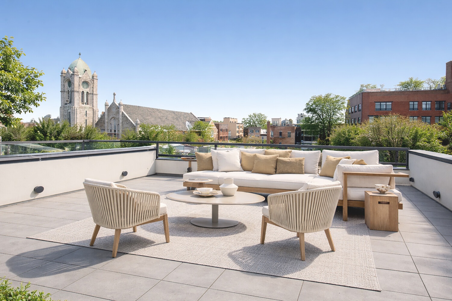 Three private outdoor spaces totaling 1200 square feet extend the living experience beyond the interior, creating multiple settings for dining or quiet moments outdoors. The terrace tops the residence, with sweeping panoramic city views, complete with a fully equipped outdoor kitchen, grilling station, and a built-in pizza oven-an exceptional setting for both gatherings and everyday indulgence. A private storage unit adds valuable convenience.