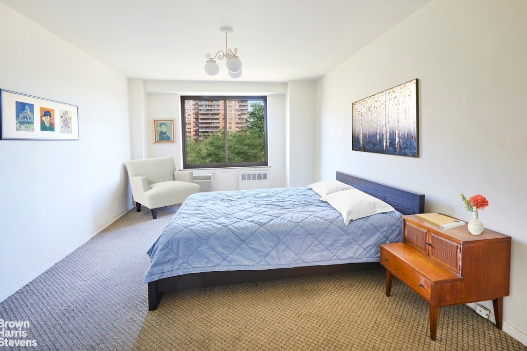 Both bedrooms easily accommodate king-sized beds, each offering walk-in closets and beautiful northern exposures overlooking the park. The primary suite features an en-suite bath with a walk-in shower for added comfort and privacy.