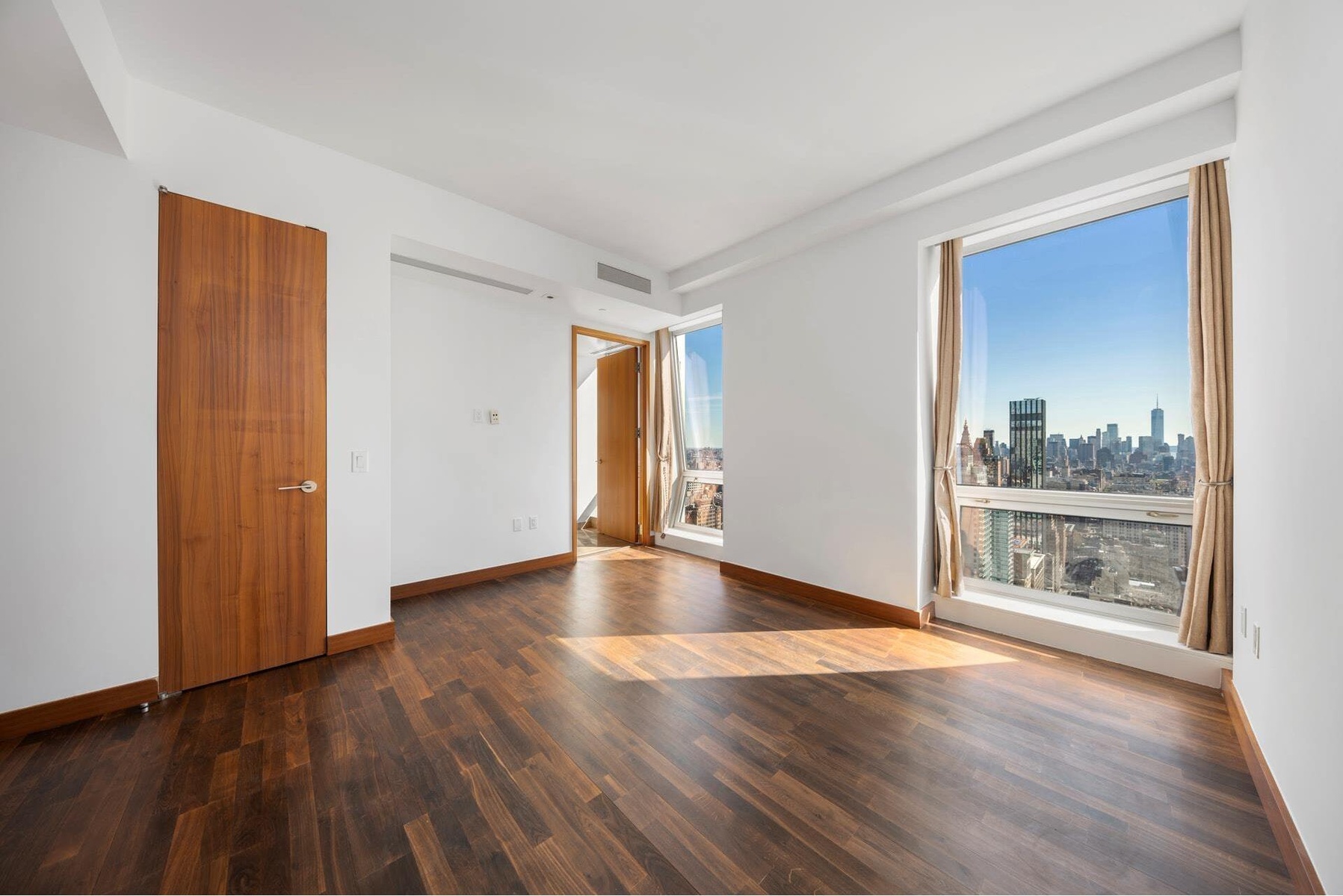 Enter the apartment and be taken away by the wall of windows with unobstructed East and Southern Views from the Living Room and Kitchen. A fantastic layout for both entertaining and relaxation, the open kitchen with Poliform chef's kitchen with white stone countertops, Miele and Subzero appliances. The living room has direct Southern views of downtown Manhattan plus the iconic views of the Empire State Building.
