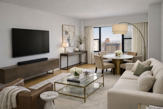 29H is that rare NYC apartment that actually lives up to the hype. High on the 29th floor, it's a front row seat to Lincoln Center, the Hudson River, and the distant hills of New Jersey, with jaw dropping sunsets that turn your living room into a daily light show. By night, the city lights and Lincoln Center glow like your own giant screen saver.