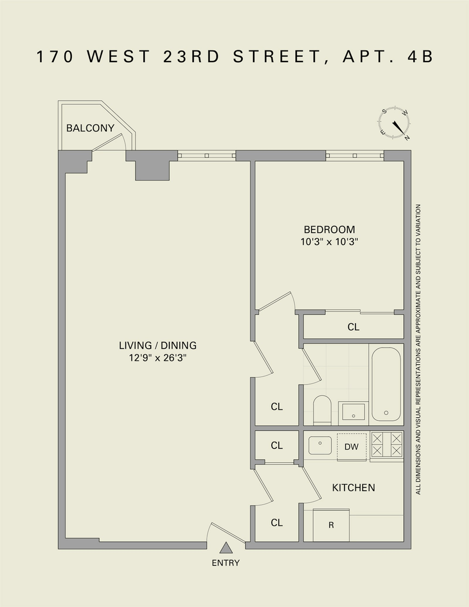 Welcome home to this beautifully renovated, south-facing one-bedroom in a full-service Chelsea condominium at 170 West 23rd Street.