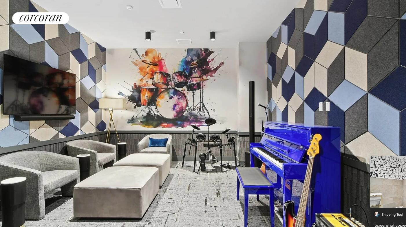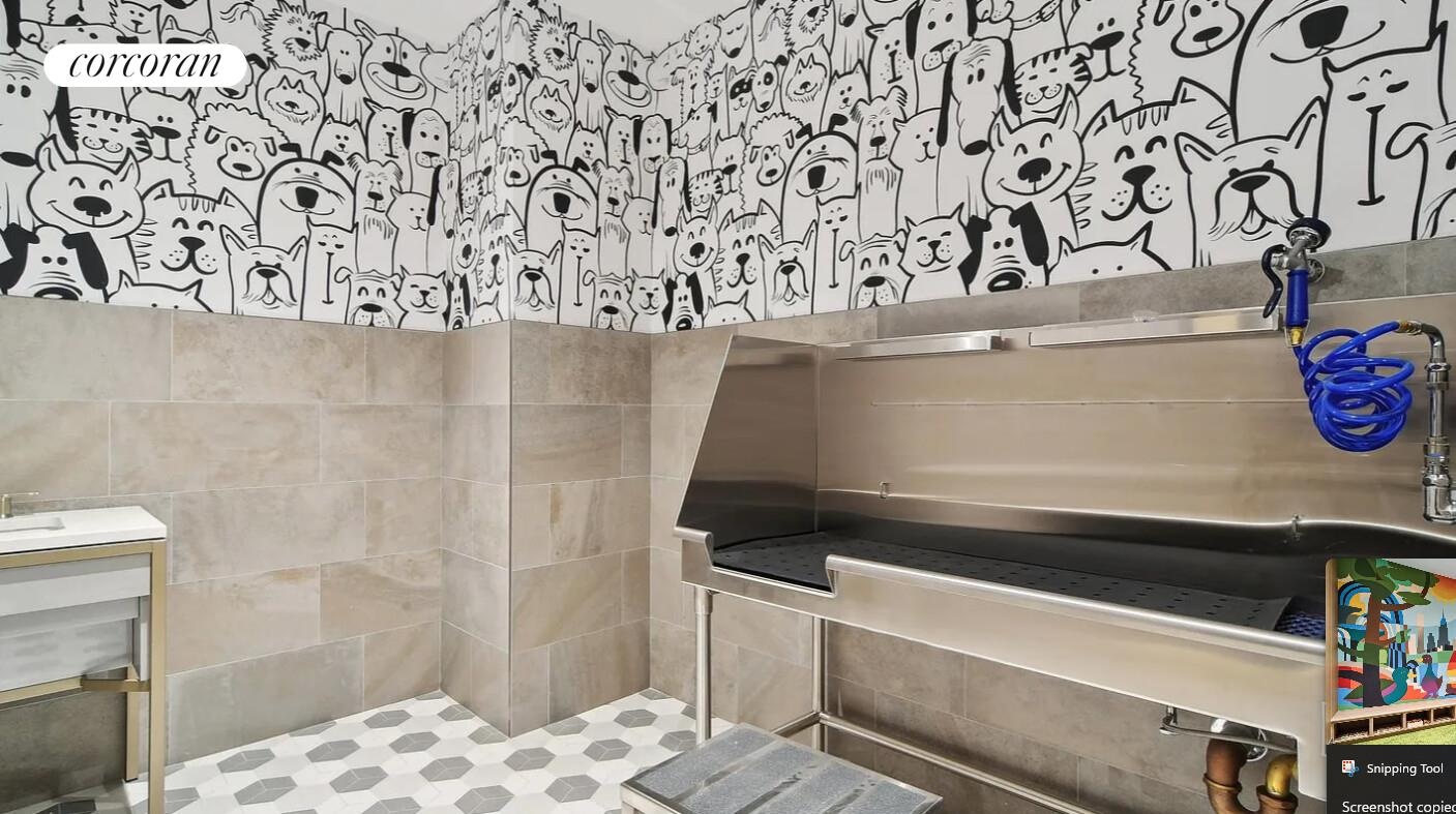 Residents enjoy access to a fully curated suite of amenities, including a fitness center, residents' lounge, bookable dining room with catering kitchen, landscaped terrace, children's playroom, pet wash, music room, screening room, bike storage, and a rooftop terrace with grills, all complemented by a 24-hour attended lobby and white-glove staff.
