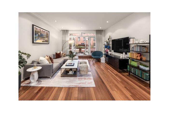 Spanning nearly 2,000 square feet, this three-bedroom, two-and-a-half-bath home features soaring 10-foot ceilings and an expansive great room designed for both effortless daily living and entertaining. Elegant glass doors open directly onto the 539-square-foot terrace, creating seamless indoor-outdoor flow from the living room and two bedrooms.