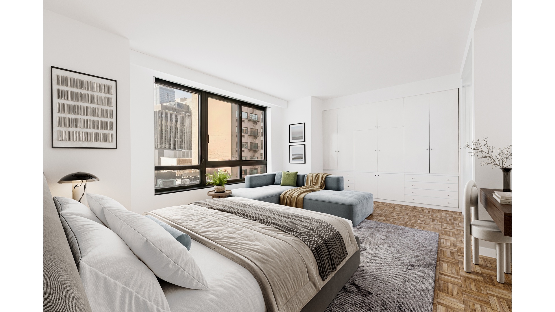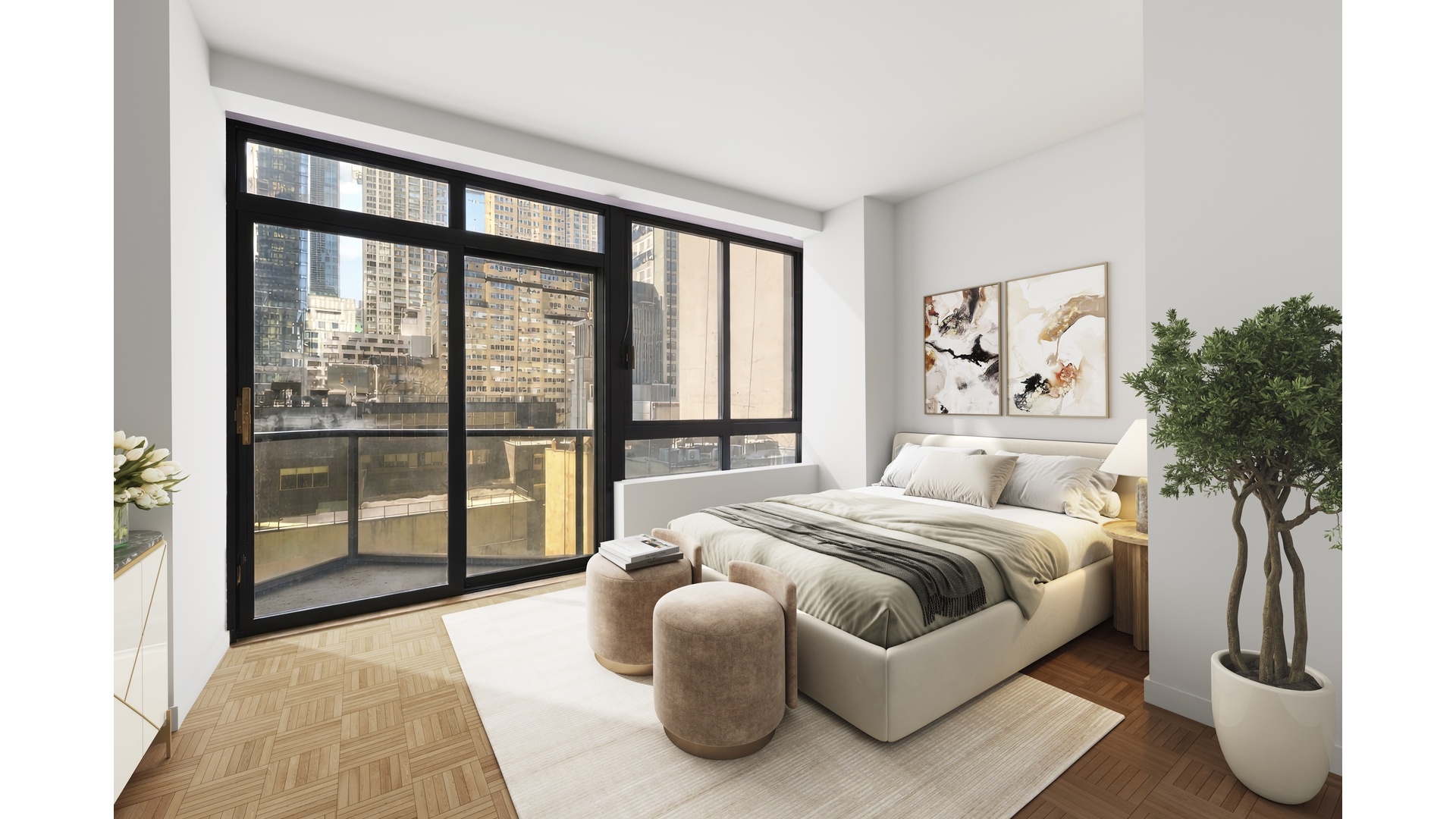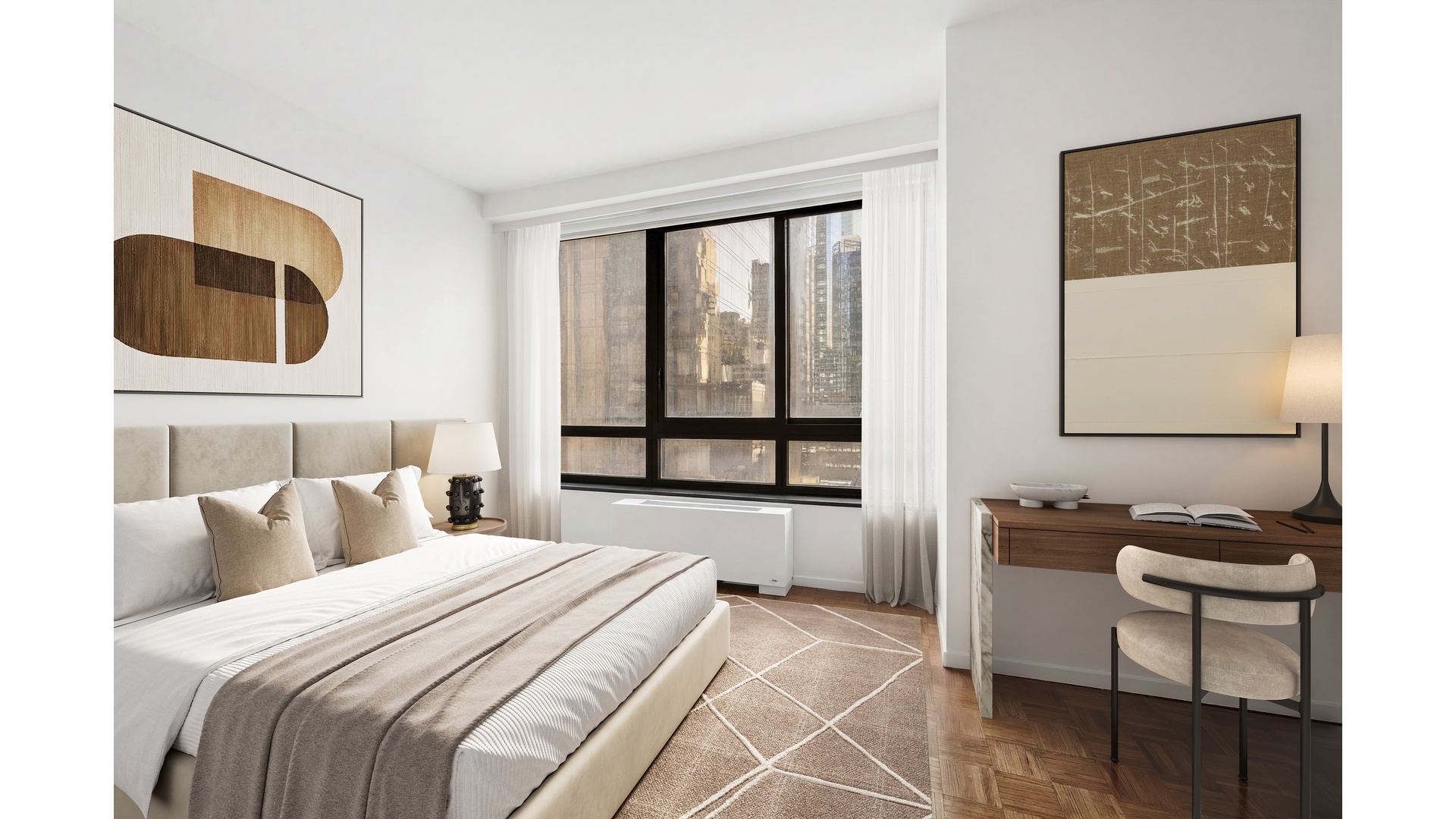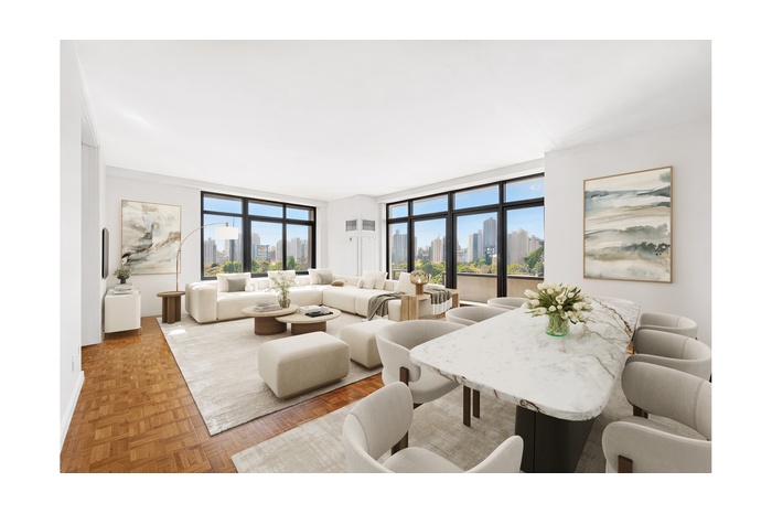 Located at the prestigious 100 United Nations Plaza, this expansive four-bedroom, three-and-a-half-bathroom residence spanning approximately 2,139 square feet offers elegant living in one of Manhattan's most distinguished full-service condominium towers. Large windows fill the home with natural light while capturing beautiful views of the East River and the surrounding skyline, directly across from the gardens and flags of the United Nations headquarters.