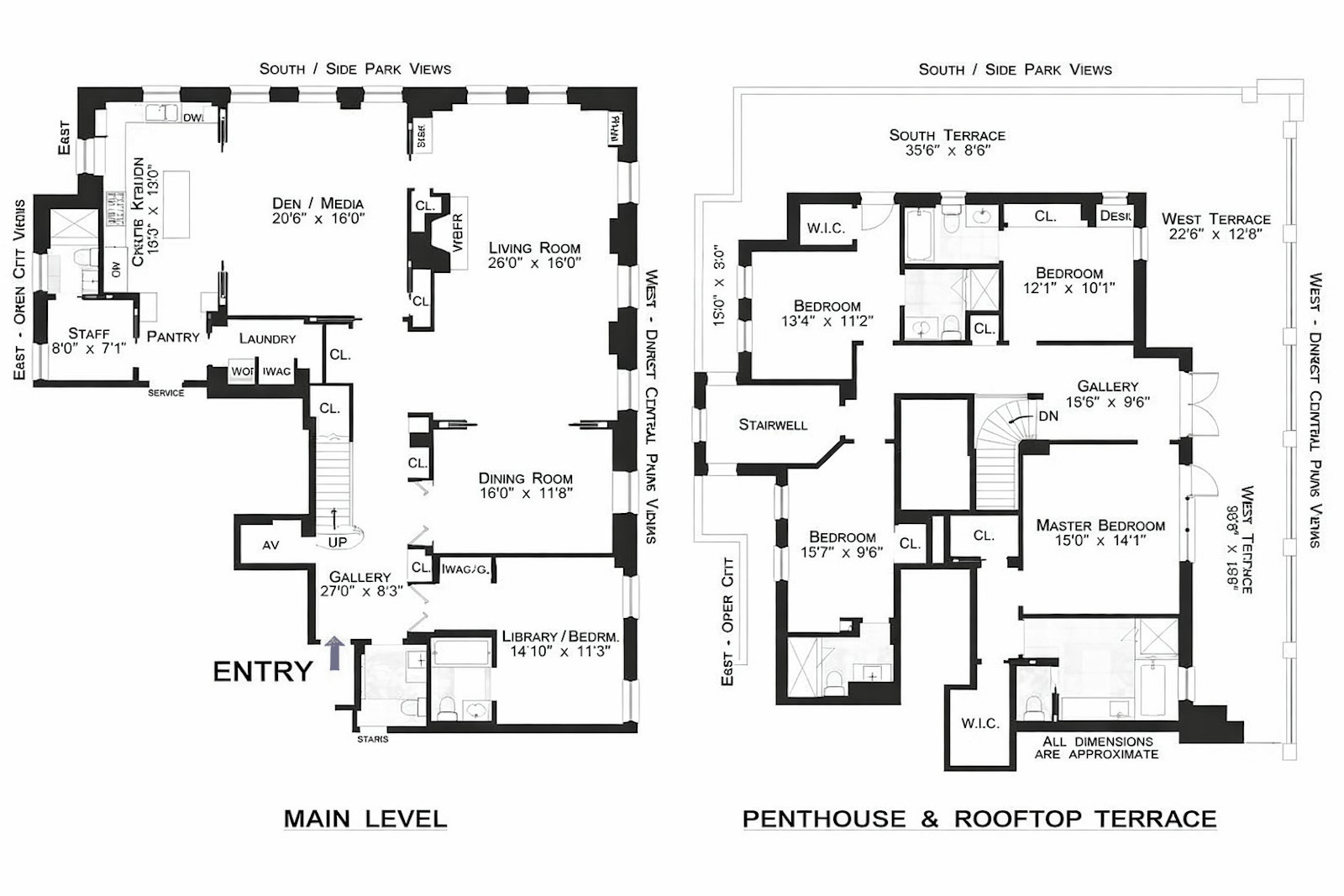 Located on Fifth Avenue's Museum Mile, this penthouse duplex boasts panoramic views of Central Park, the reservoir, and dramatic skyline views to Midtown Manhattan and beyond !