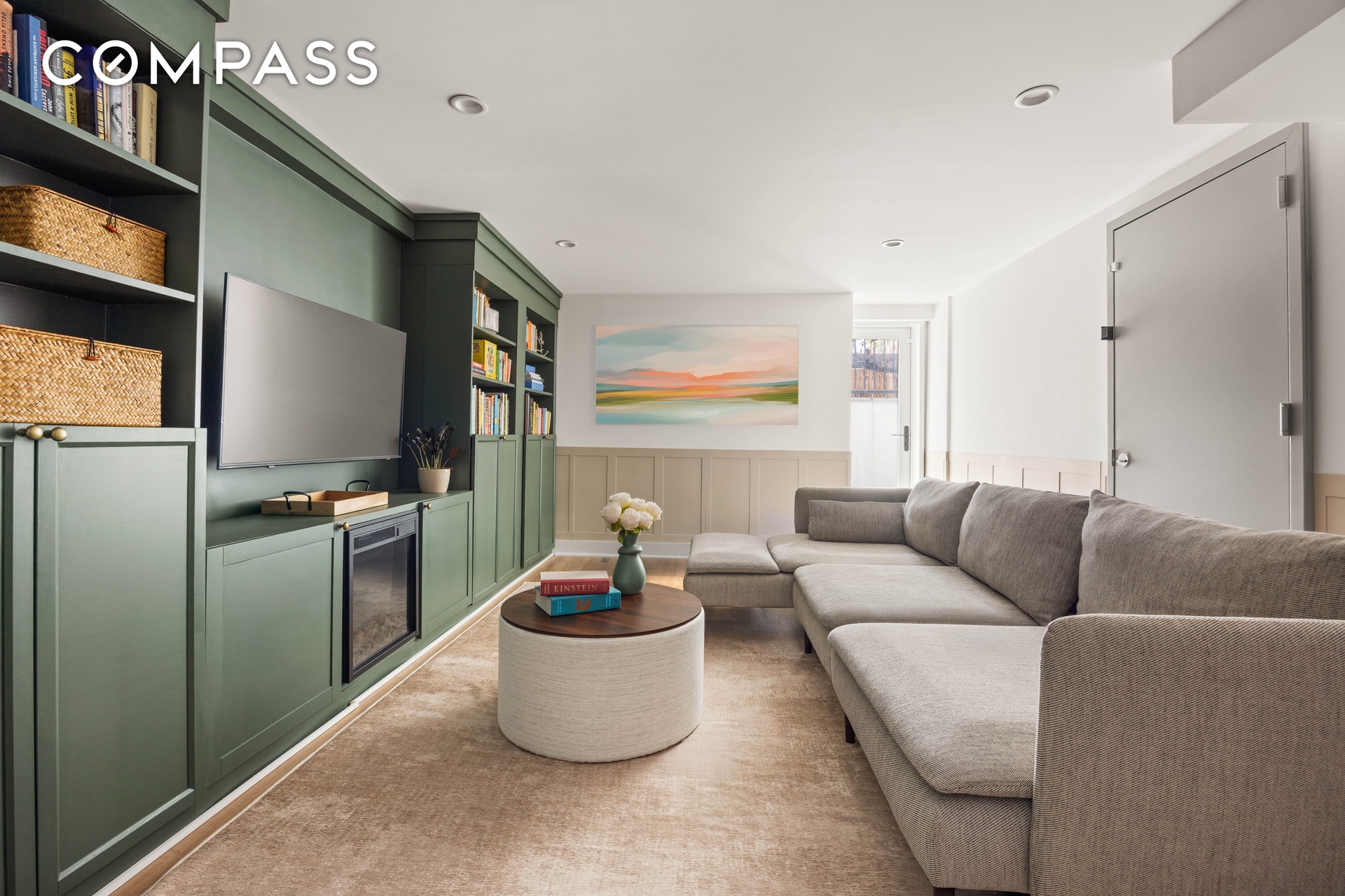 Two generously sized bedrooms are tucked away at the back of the apartment, overlooking serene private gardens. One level below, a spacious, thoughtfully designed recreation room has been completely reimagined. Ideal for additional living, entertaining, or a guest suite, the possibilities are endless. With direct access to the private outdoor gardens, this space is perfect for gatherings, fire pits, and BBQs.