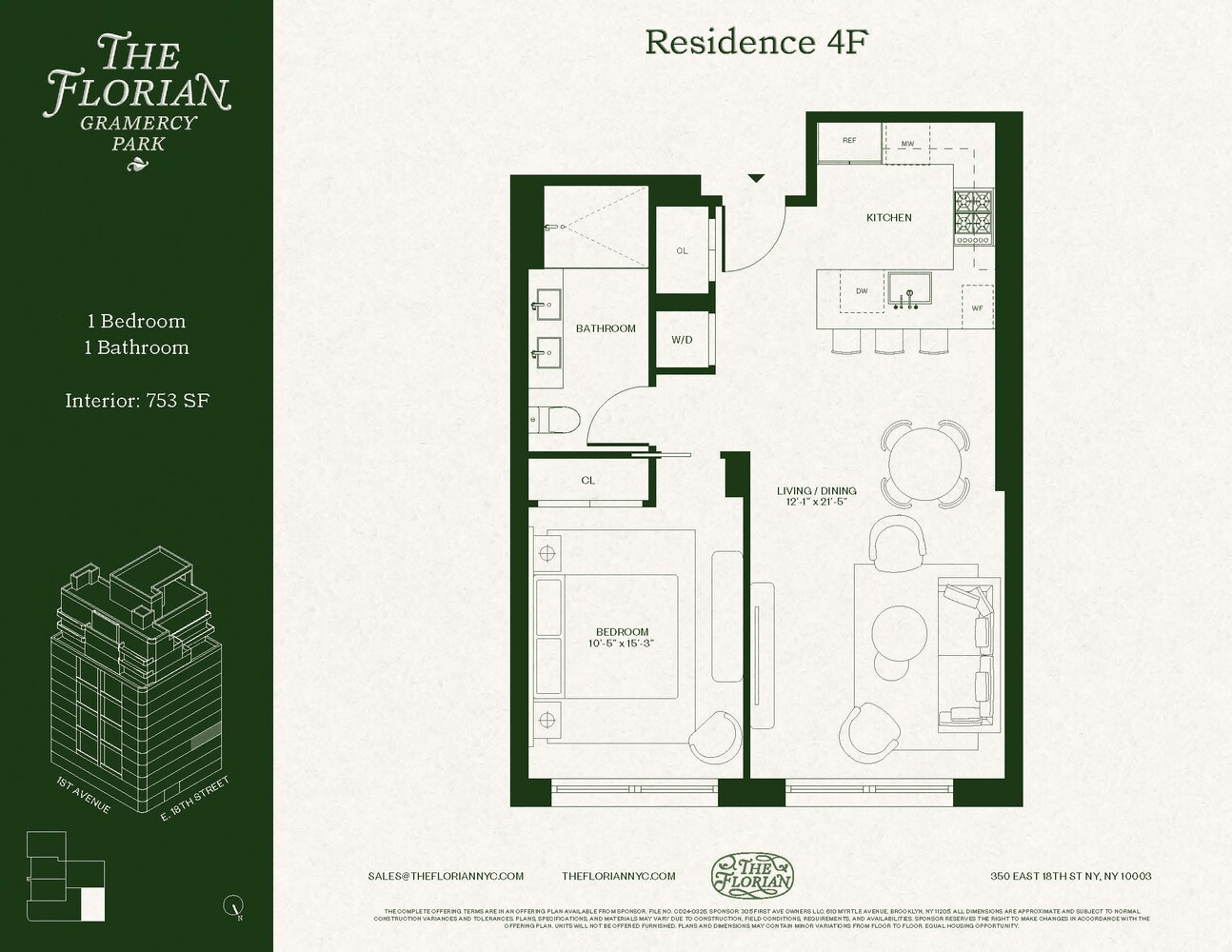 The Florian reinterprets Gramercy's grandeur for the modern New Yorker. Its graceful design, generous scale, and hand-selected finishes come together to form timeless spaces. A full suite of amenities enhances daily life, including a 24-hour doorman and concierge, a residents' lounge with adjacent outdoor courtyard, a fitness center, and a spa with sauna, jacuzzi, cold plunge, and treatment room. The rooftop terrace, complete with an outdoor kitchen, as well as dining and lounge seating, provides panoramic views. Private parking is also available for purchase. A reprieve from the hustle in one of Manhattan's most exclusive neighborhoods, The Florian brings convenience and updated elegance to a historic address. Designed with intention and verve, The Florian is a new landmark in Gramercy.