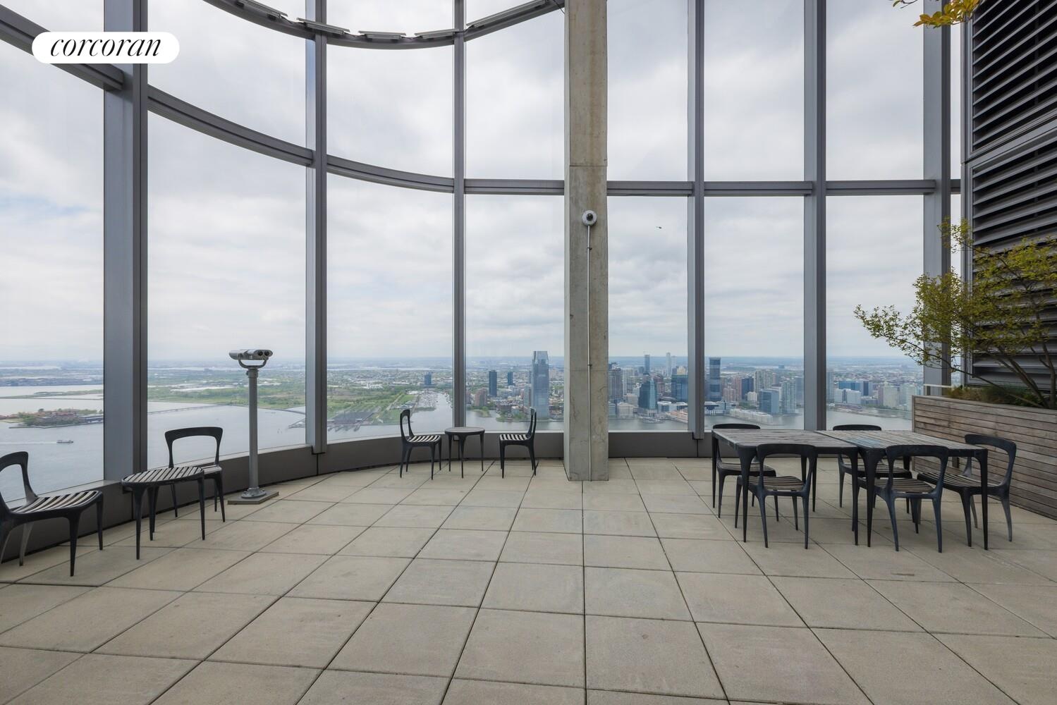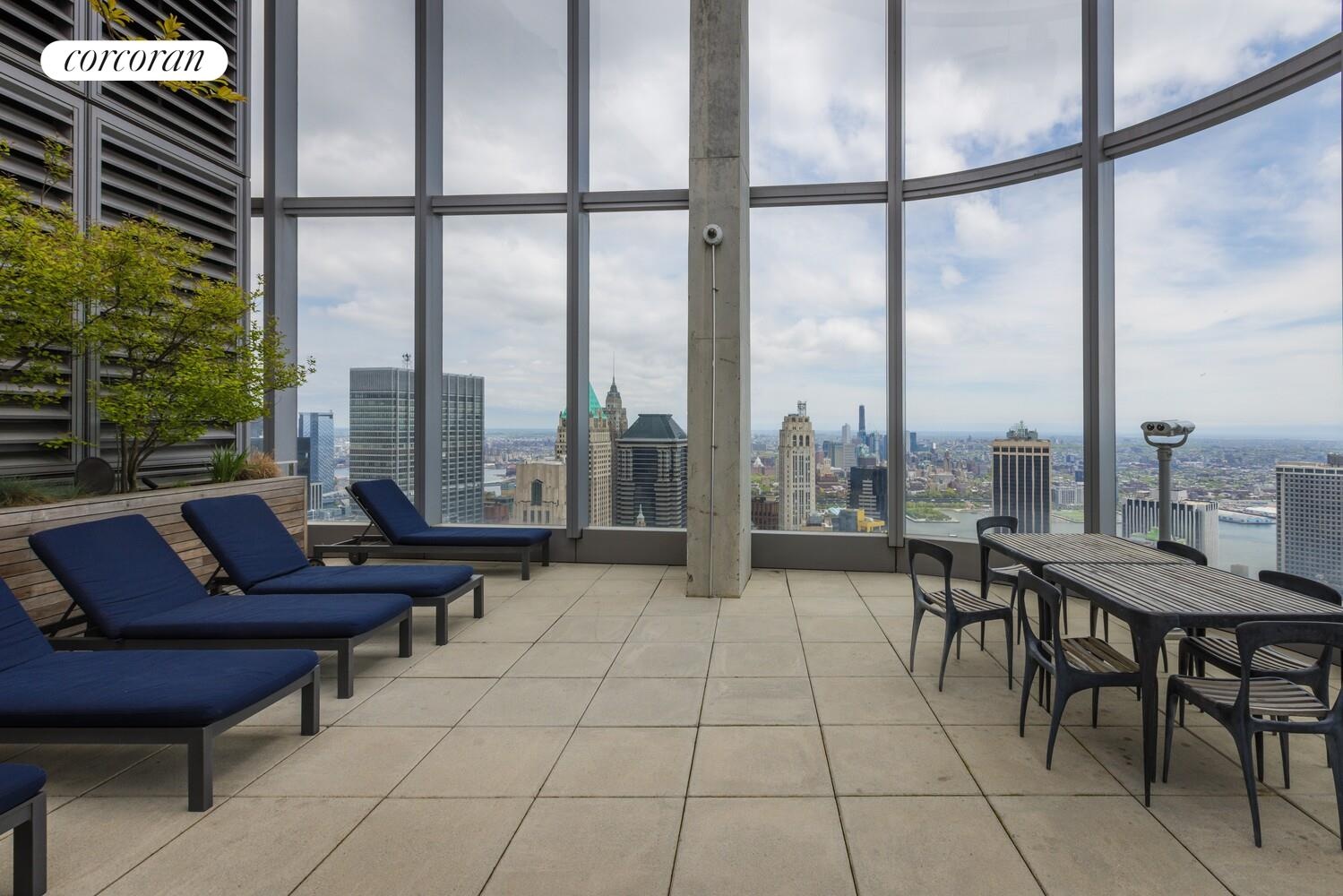 Welcome to your warm and Sunny home in this beautiful luxury building designed by famous architect Helmut Jahn, Sunlight from the floor to ceiling windows fills up the whole apt, 10 ft ceiling provides you lots of space. This amazing home is full of modern technology and details which brings you a different level of luxury life style: 1.5 Bath room, spacious living space, lots of closet space, beautiful hard wood floor, high end appliance and practical layout, all working together to make your life convenient and happy. High quality building service and amazing amenities make the building one of the best in FiDi, amenities include roof top lounge with stunning ocean view and BBQ grille, 60 foot lap pool, fitness center, sauna, steam room, and more.. . With Eatlaly, Brookfield and Oculus close by, and all the restaurants and subway lines nearby, this will be your happy home! Please note that photos with furniture are virtually staged.