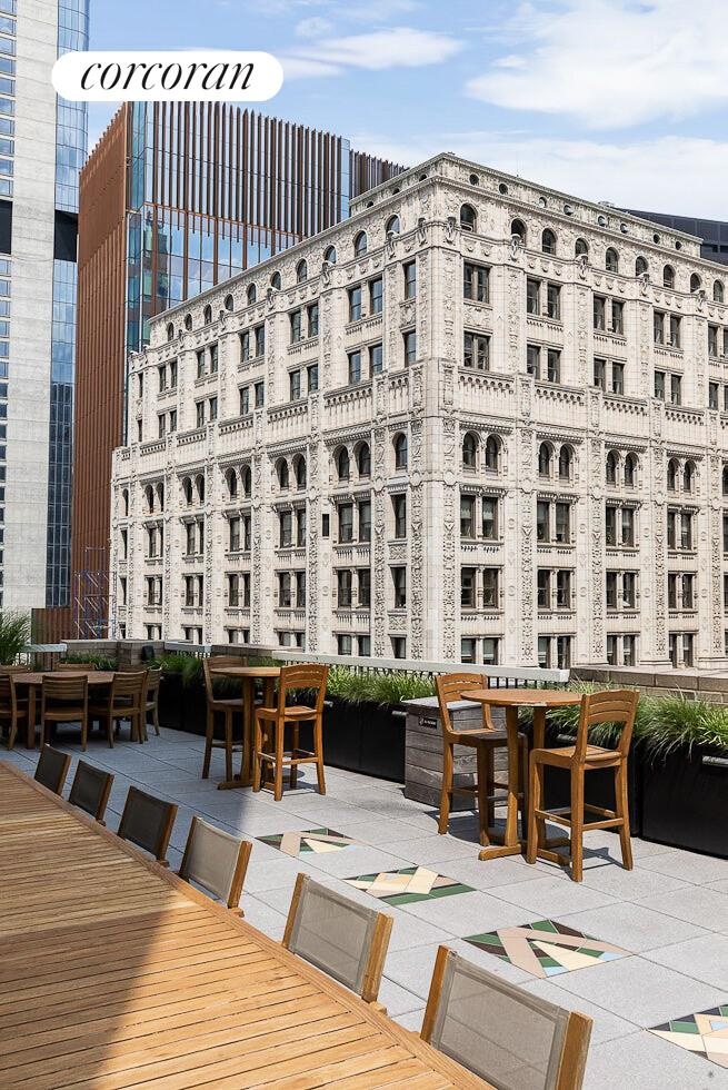 The Greenwich Club is an iconic 1929 Art Deco landmark converted to condominium use in 2008 and widely regarded as one of the Financial District's finest full-service addresses. Residents enjoy 24-hour doorman service, a live-in superintendent, a state-of-the-art fitness center, library with grand piano, billiards room, valet services for dry cleaning and housekeeping, cold storage, bike room, and laundry on every floor. The Harbor Room on the 24th floor features a full catering kitchen and sweeping views of the Hudson River and New York Harbor, and is available to owners for private events. A landscaped Sky Deck with sun loungers and daybeds crowns the building. The building is pet-friendly.