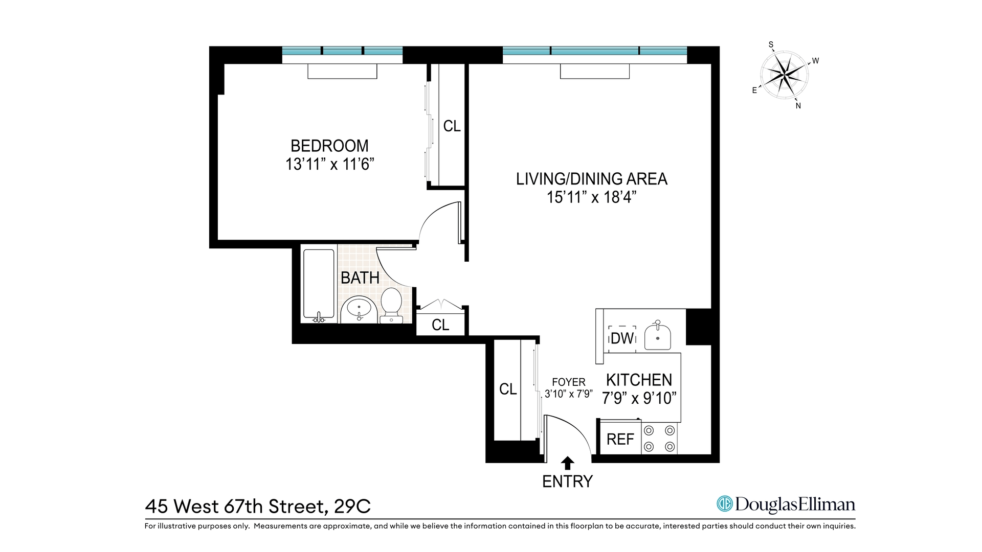 RENOVATED HIGH FLOOR 1 BEDROOM CONDO WITH OPEN CHEF'S KITCHEN; STAINLESS STEEL APPLIANCES, GENEROUS CLOSETS, BEAUTIFUL HARDWOOD FLOORS, SOUTH FACING, LOTS OF LIGHT & SUN, NEW WINDOWS, AND A MARBLE BATH.