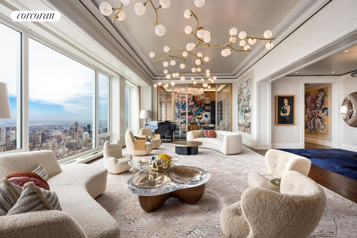 Perched on the 62nd floor of 220 Central Park South, this 5, 935 square foot simplex offers 125 linear feet of unobstructed frontage over Central Park, capturing sweeping views across ...