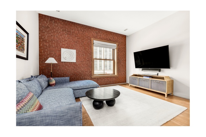 Located in the landmarked Cary Building, this 1,617-square-foot, 2-bedroom, 3-bath residence pairs authentic prewar architecture with clean, contemporary design. Eleven-foot ceilings, restored cast-iron columns, exposed brick, and wide-plank oak floors anchor the space, while a well-considered split layout offers both scale and privacy.