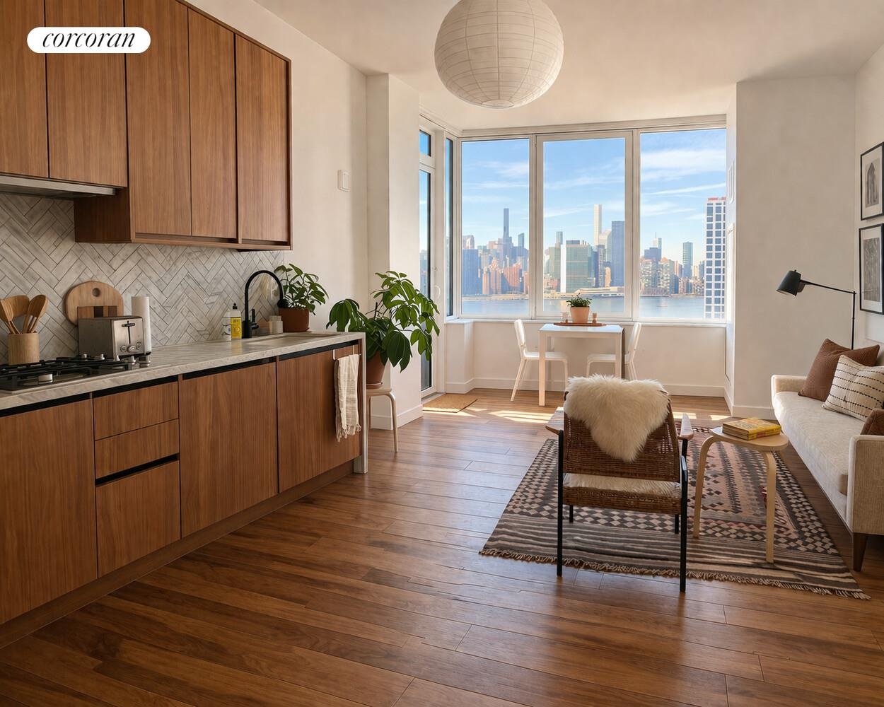 At The Greenpoint, a 2018 development, you'll be wanting for nothing. Rich with amenities, the building has a 24-hour attended lobby, waterfront terrace and lounge, co-working space, billiards, gym, basketball court, sun deck and courtyard. With the ferry right on your corner, you can get to Midtown Manhattan, Wall Street, Williamsburg and Long Island City in one of the most delightful commutes imaginable. A public waterfront park is the perfect bucolic complement to Greenpoint's bustling restaurant and bar scene, only blocks away.