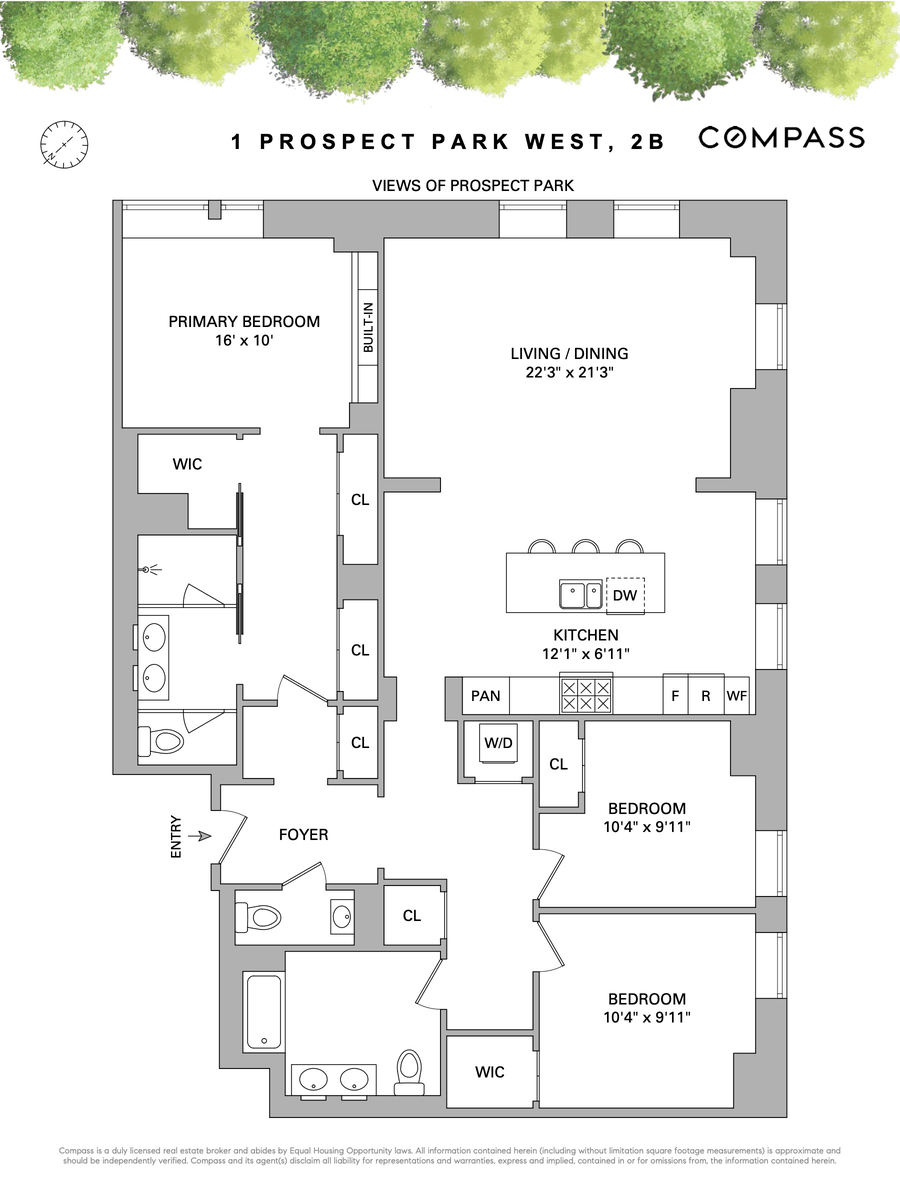 Welcome home to residence 2B, a rare, grand-scale 1,941-sq. ft. 3-bed, 2.5-bath with iconic southeast exposures directly overlooking Prospect Park. With ceiling heights reaching 13 feet and expansive windows framing lush park views, 2B is defined by scale, light, and beautifully preserved pre-war detail, thoughtfully paired with refined modern finishes.