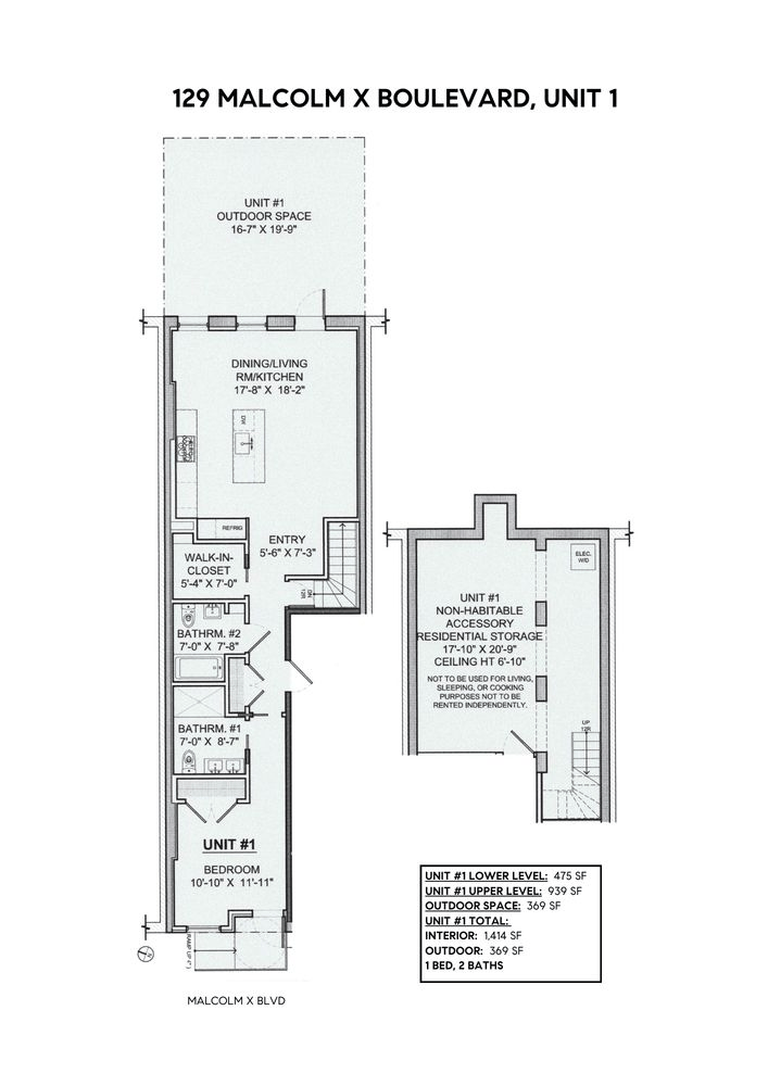 Unit #1 is handicap accessible/ADA compliant. Offering an expansive 1,439 square feet of living space over two floors, thoughtfully designed to cater to a modern lifestyle. An open and loft-like interior with massive ceilings opens onto 369 square feet of private outdoor space. Additionally, an internal staircase and lower-level rec room (with heated floors and central AC) adds to the townhouse feel.