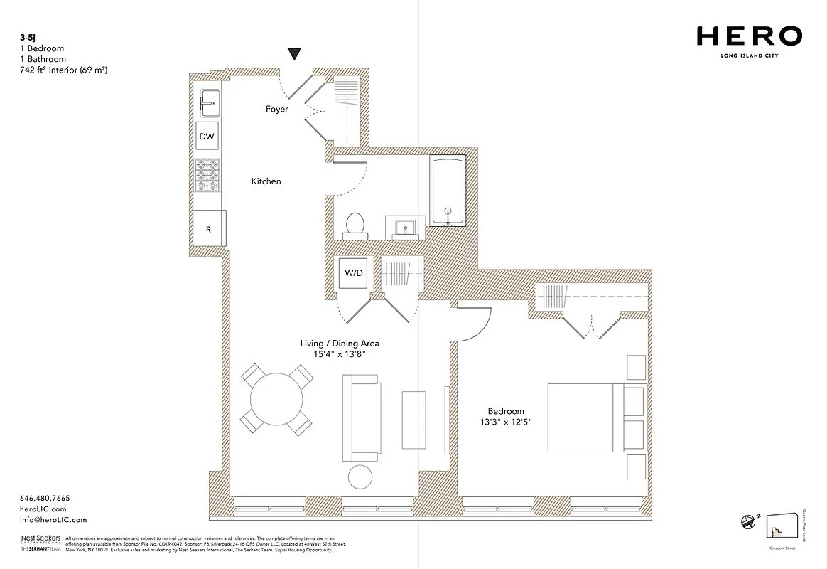 Experience elevated living at Unit 4J in The Hero, one of Long Island City’s most iconic luxury condominiums. This thoughtfully designed one-bedroom residence spans approximately 742 square feet, offering a blend of style, comfort, and convenience in a vibrant urban setting.